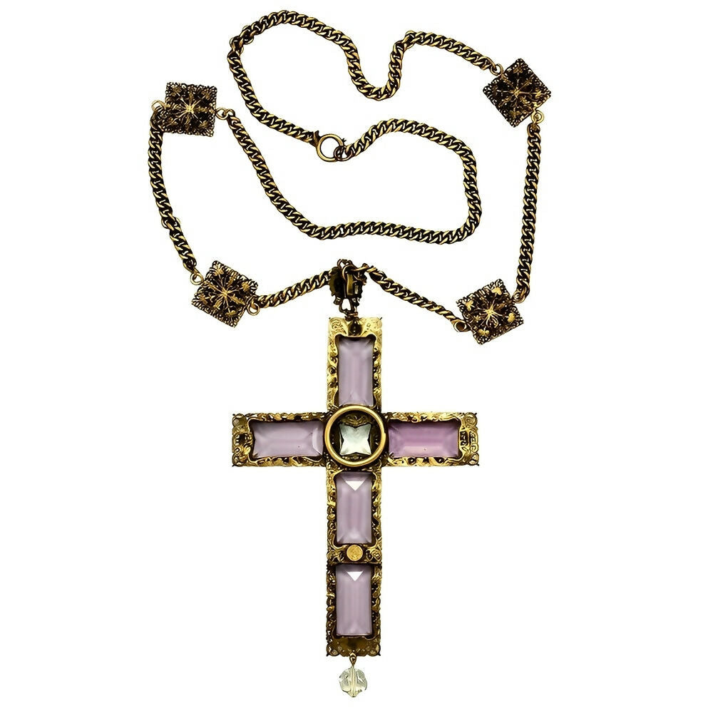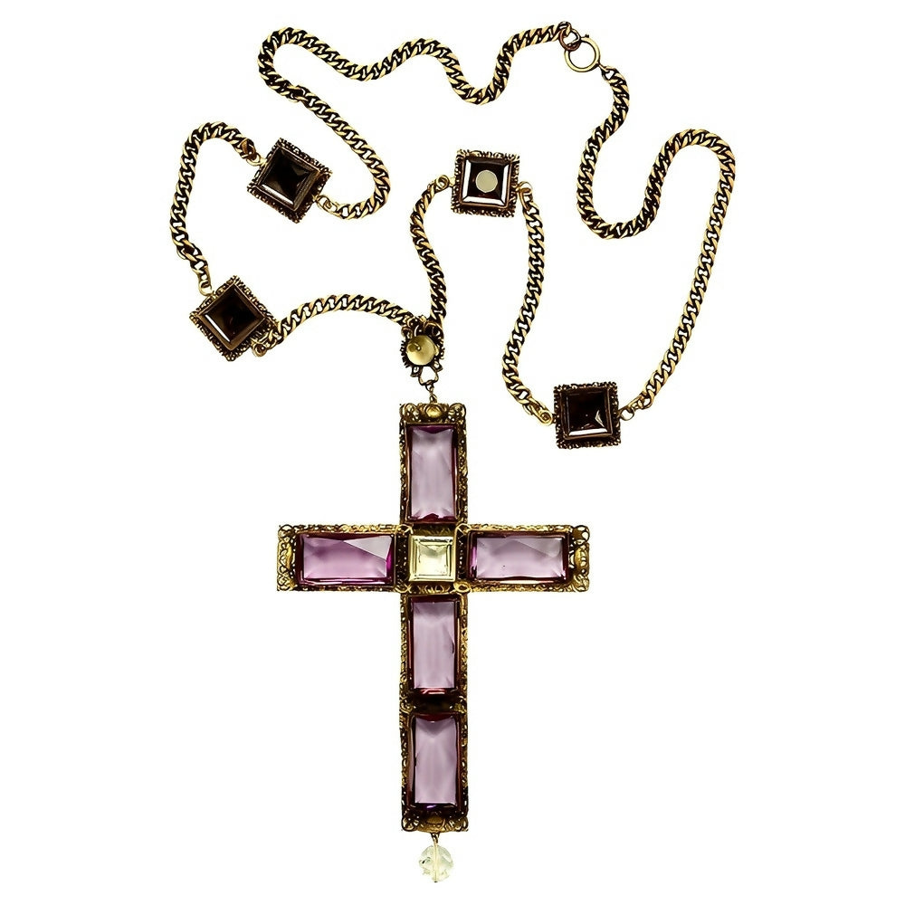 JOSEFF OF HOLLYWOOD MAUVE CRYSTAL CROSS NECKLACE 1940S