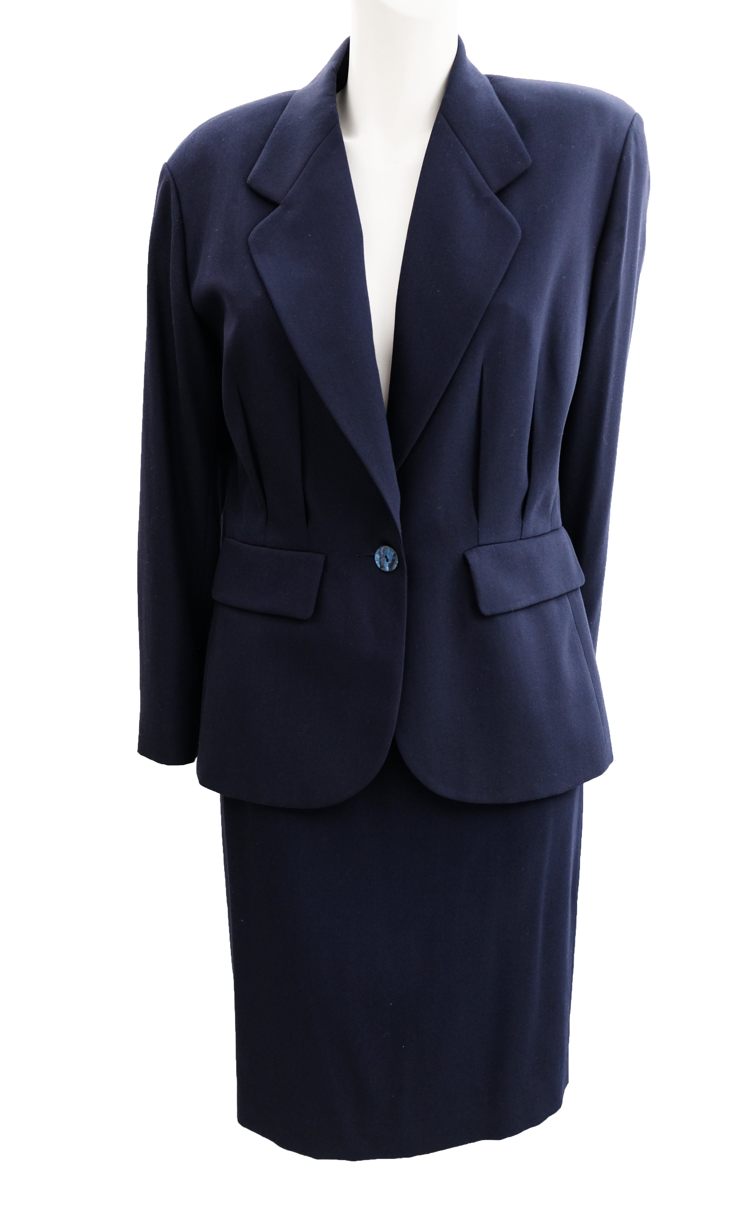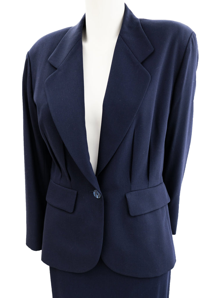 Kenzo Vintage Tailored Skirt Suit in Navy Wool, UK10-12