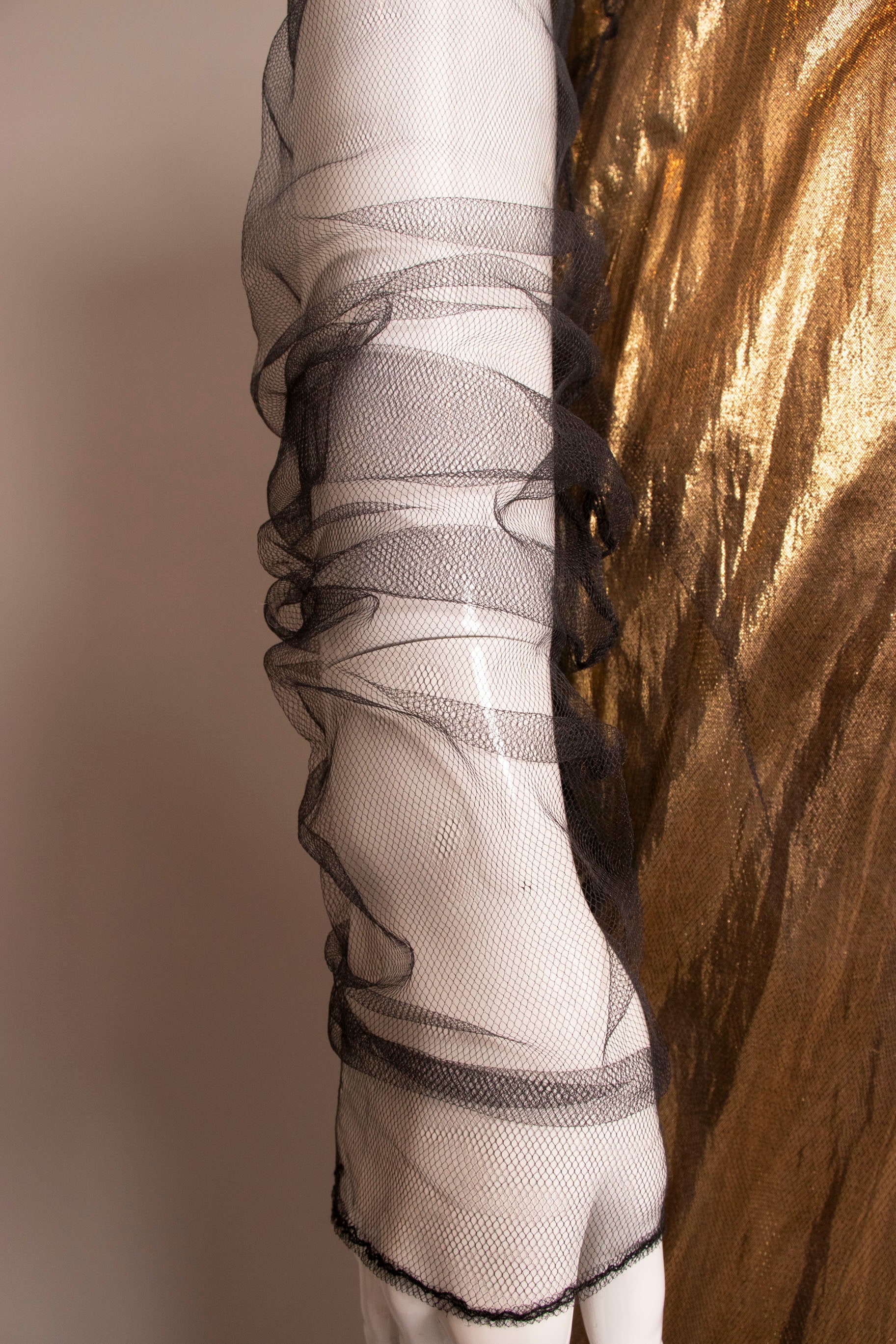 • Fabric: No content tag, gold lame, mesh