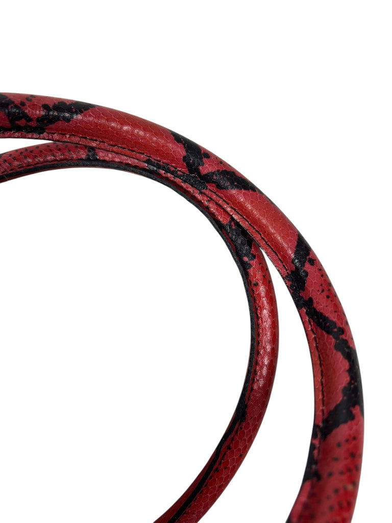 1990s Moschino handbag in textured python snake skin effect leather with gold-tone heart zipper. All details below: