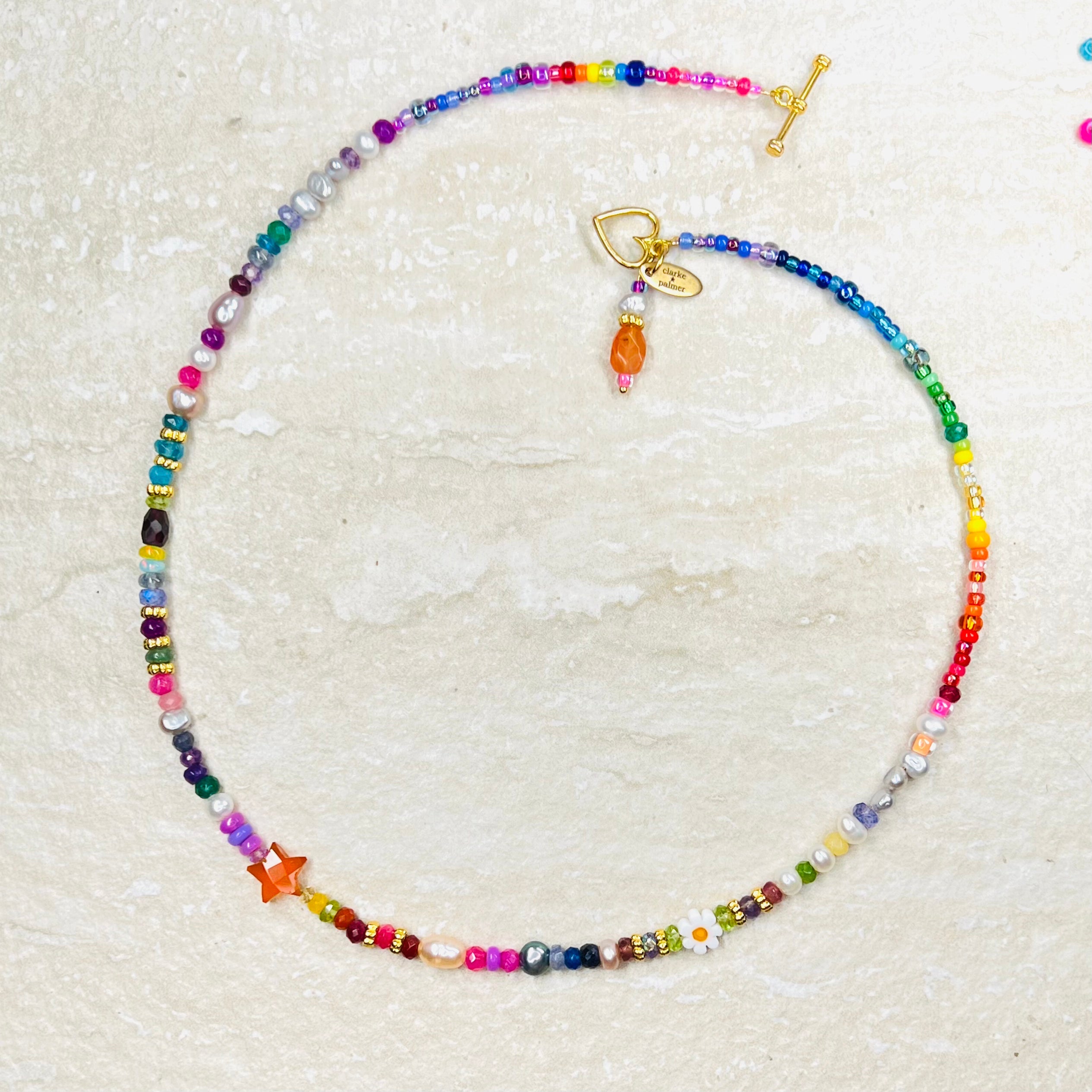 The stunning rainbow tones of this necklace can help support the all of the Chakras. Read about these in this link: https://clarkepalmer.com/collections/chakra-jewellery