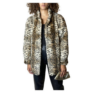 Original Vintage 1990's Tiger Print Faux Fur Coat UK 8 - 12