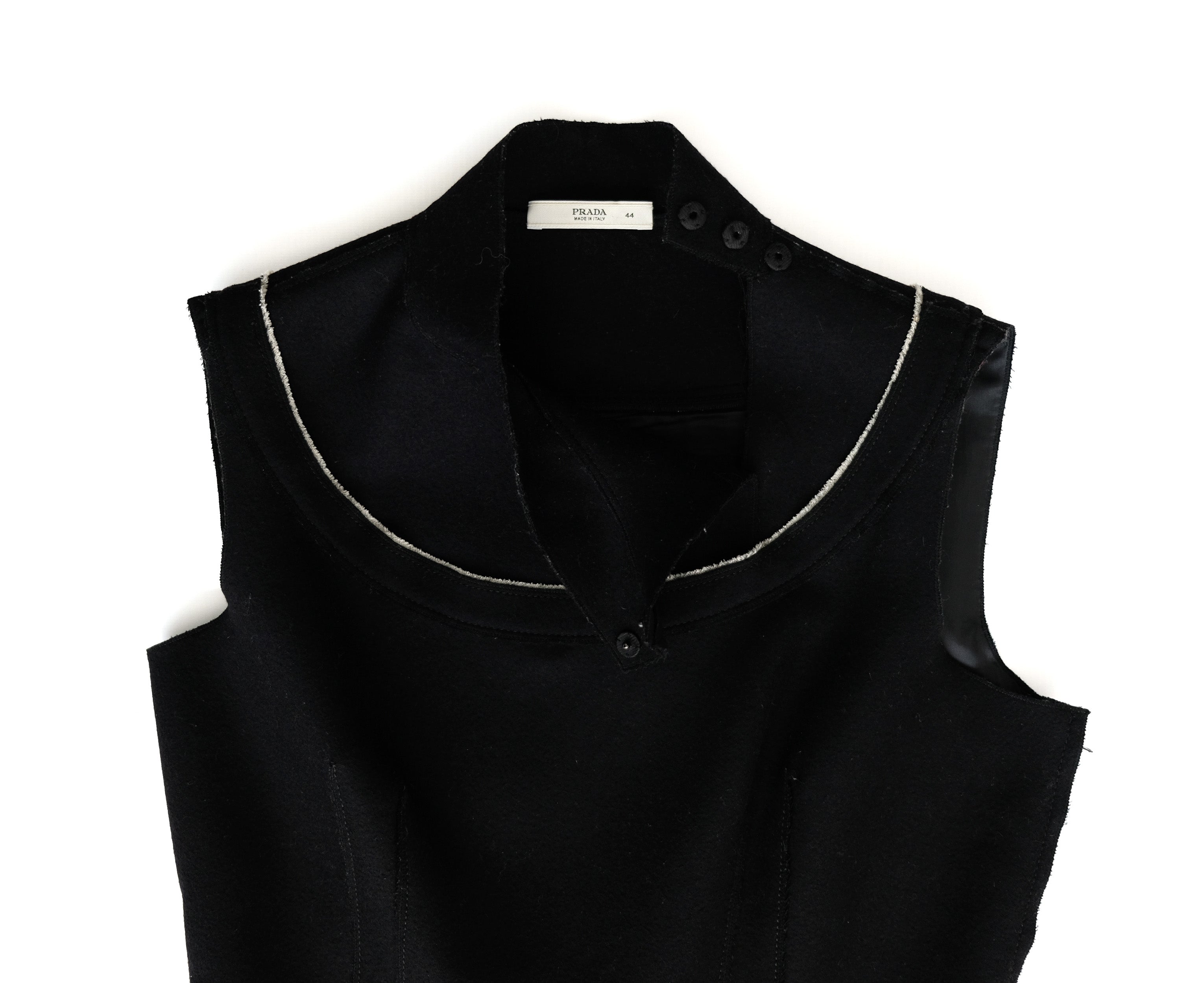 A lovely sleeveless tailored dress by Prada, in felted black wool.