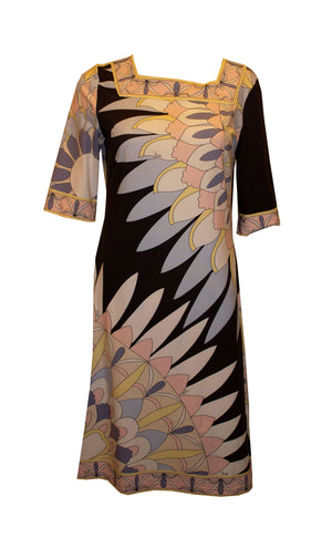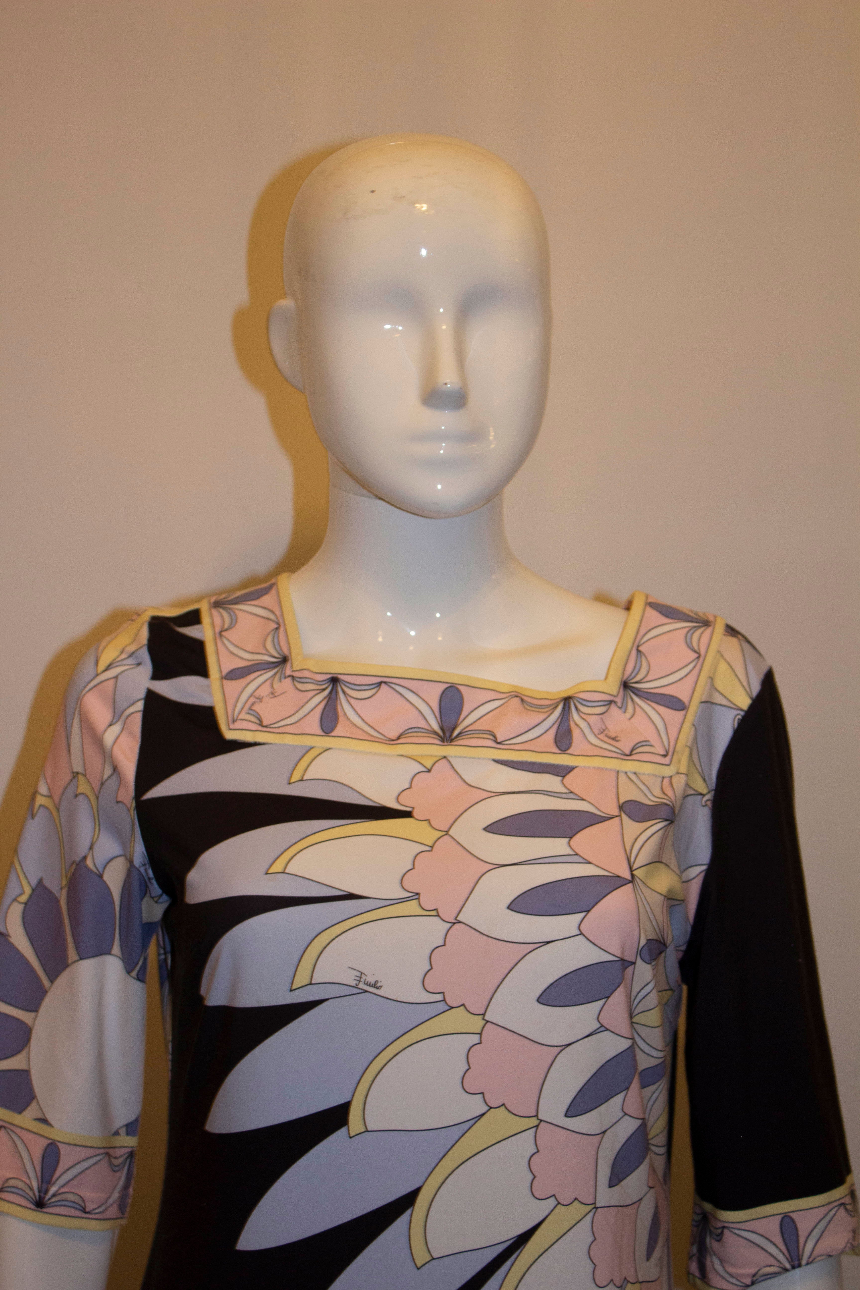 A lovely silk jersey dress by Pucci, in ice cream colours. The dress has a square neckline and elbow length sleaves. Made in Italy