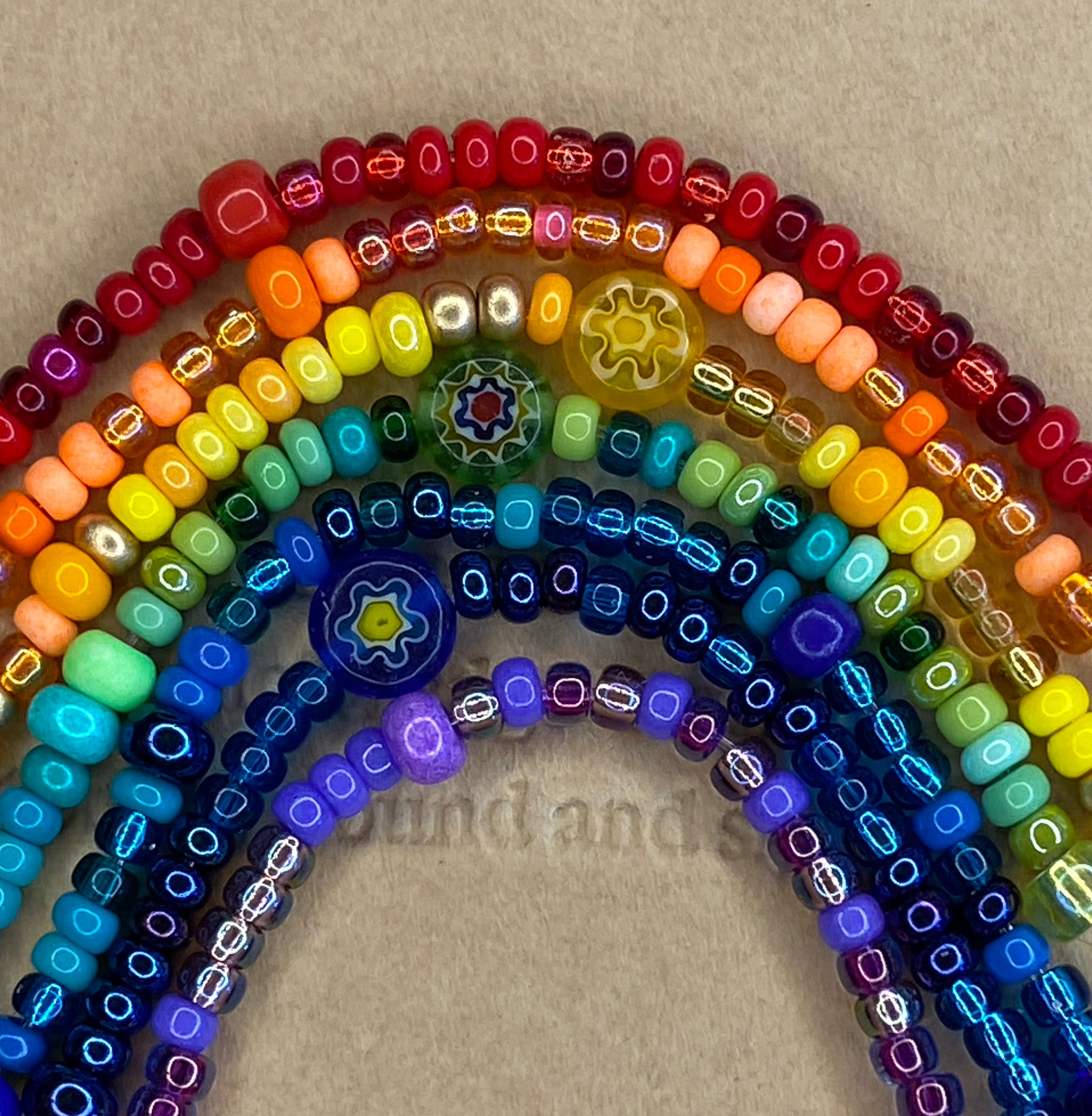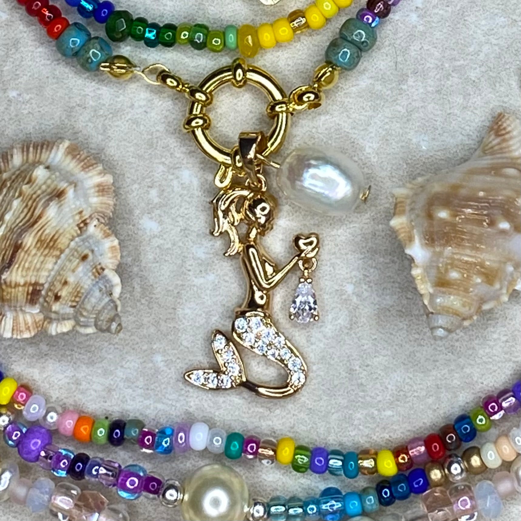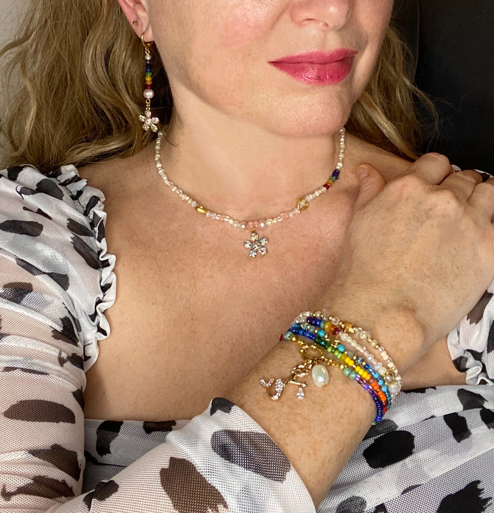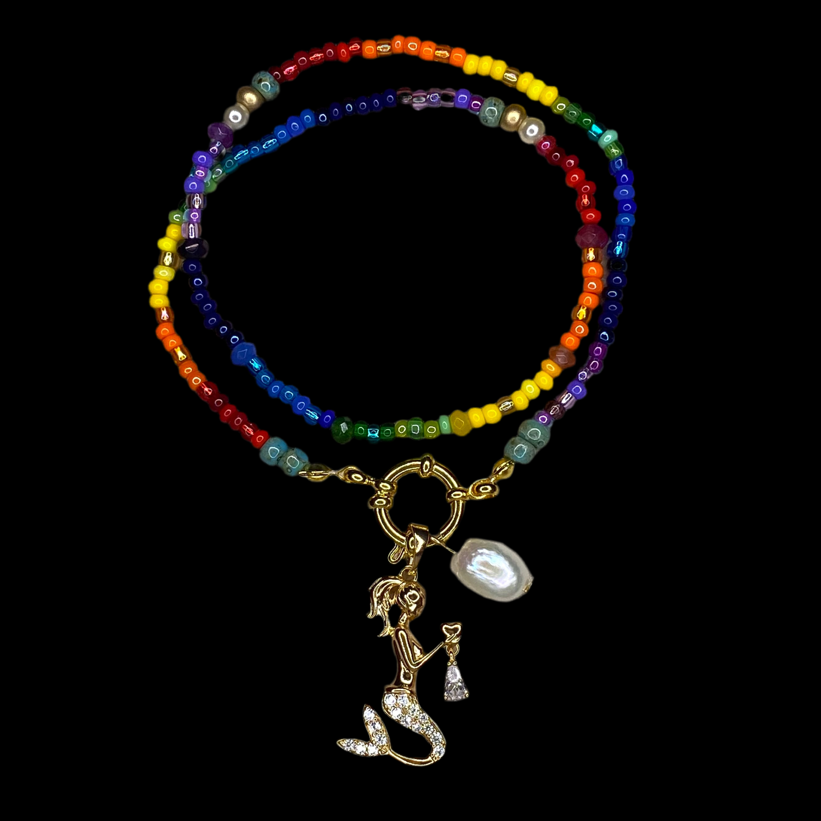 The Rainbow Semi-Precious Charm Necklace is handmade from Preciosa and Miyuki glass beads and agates.