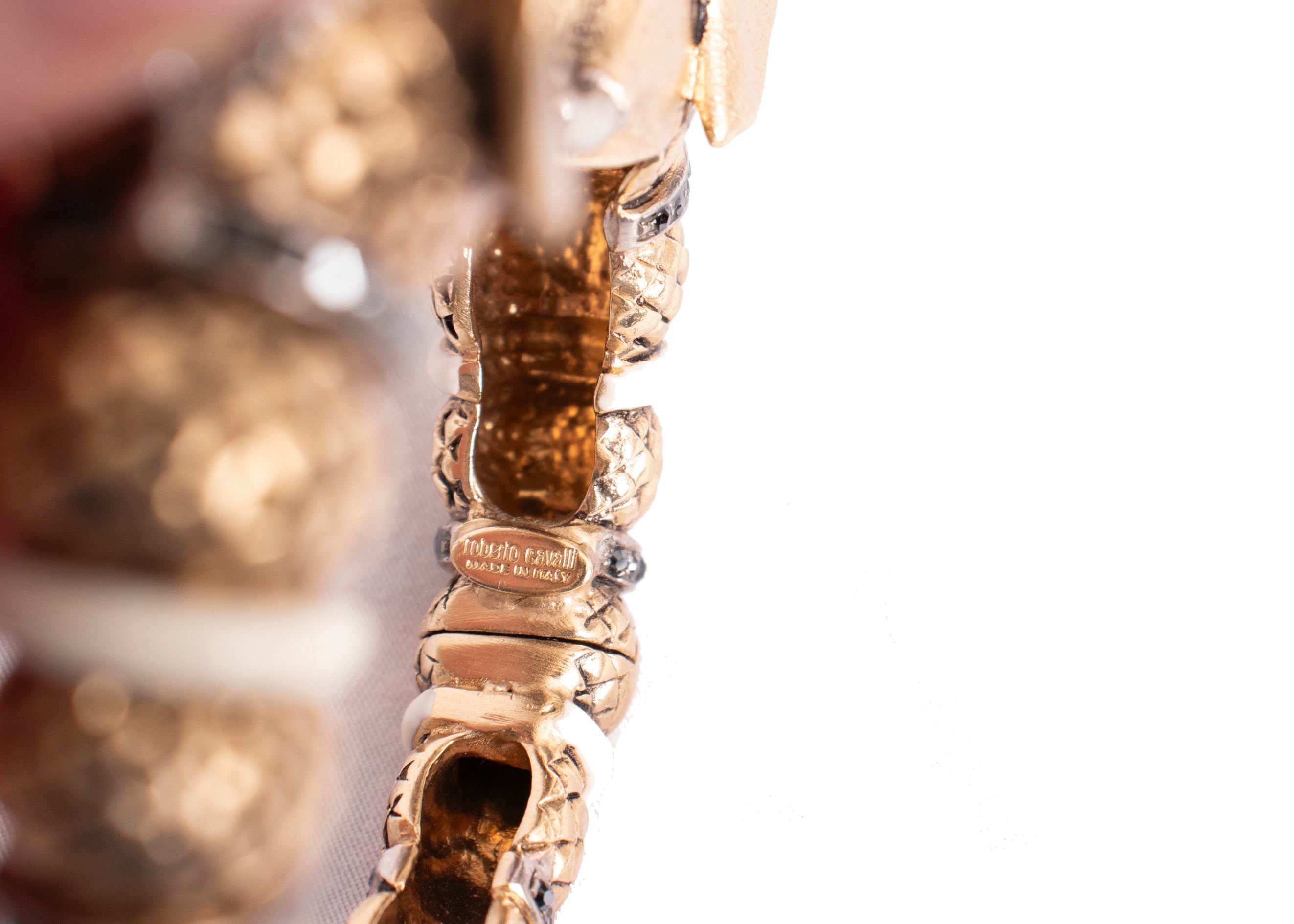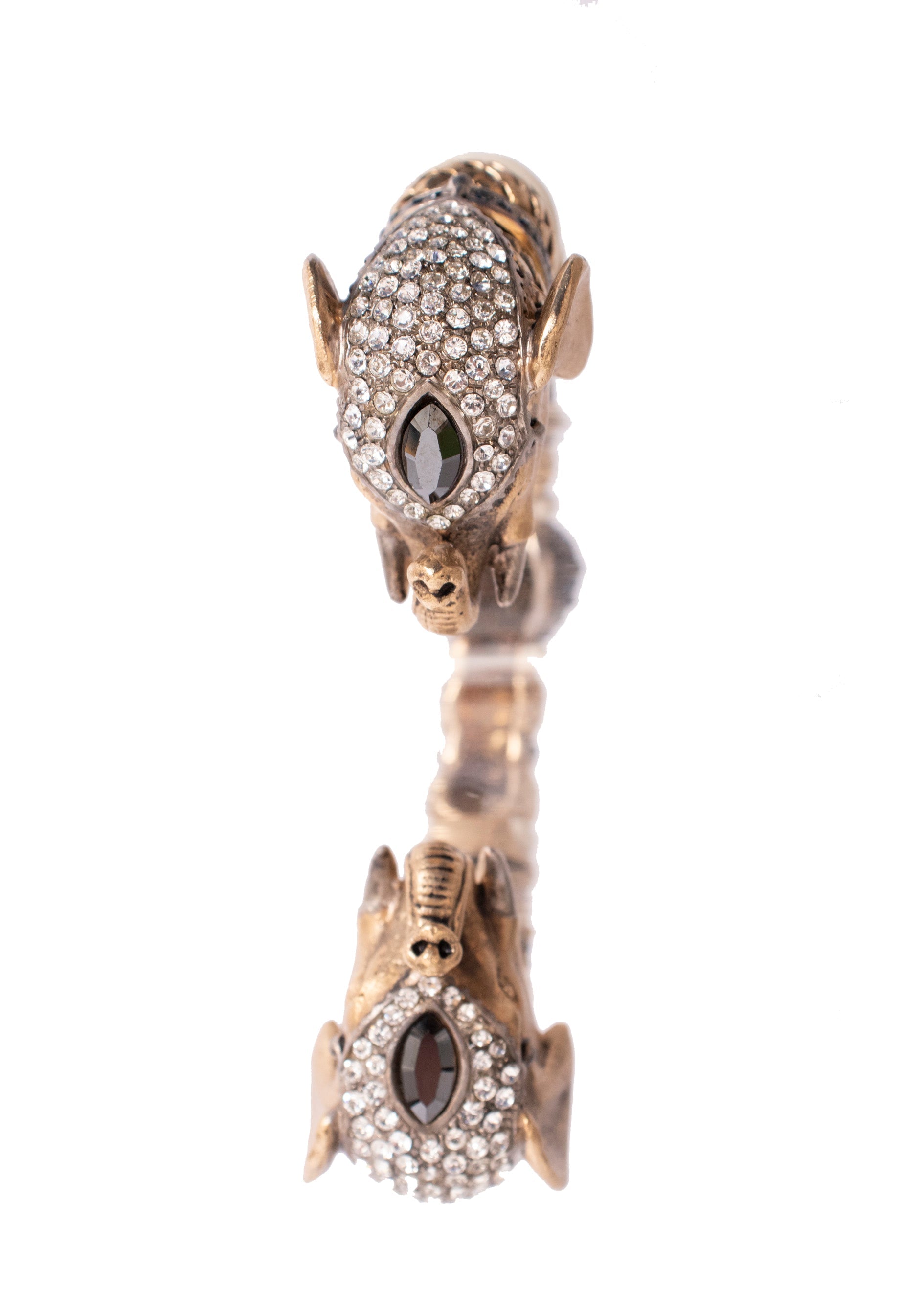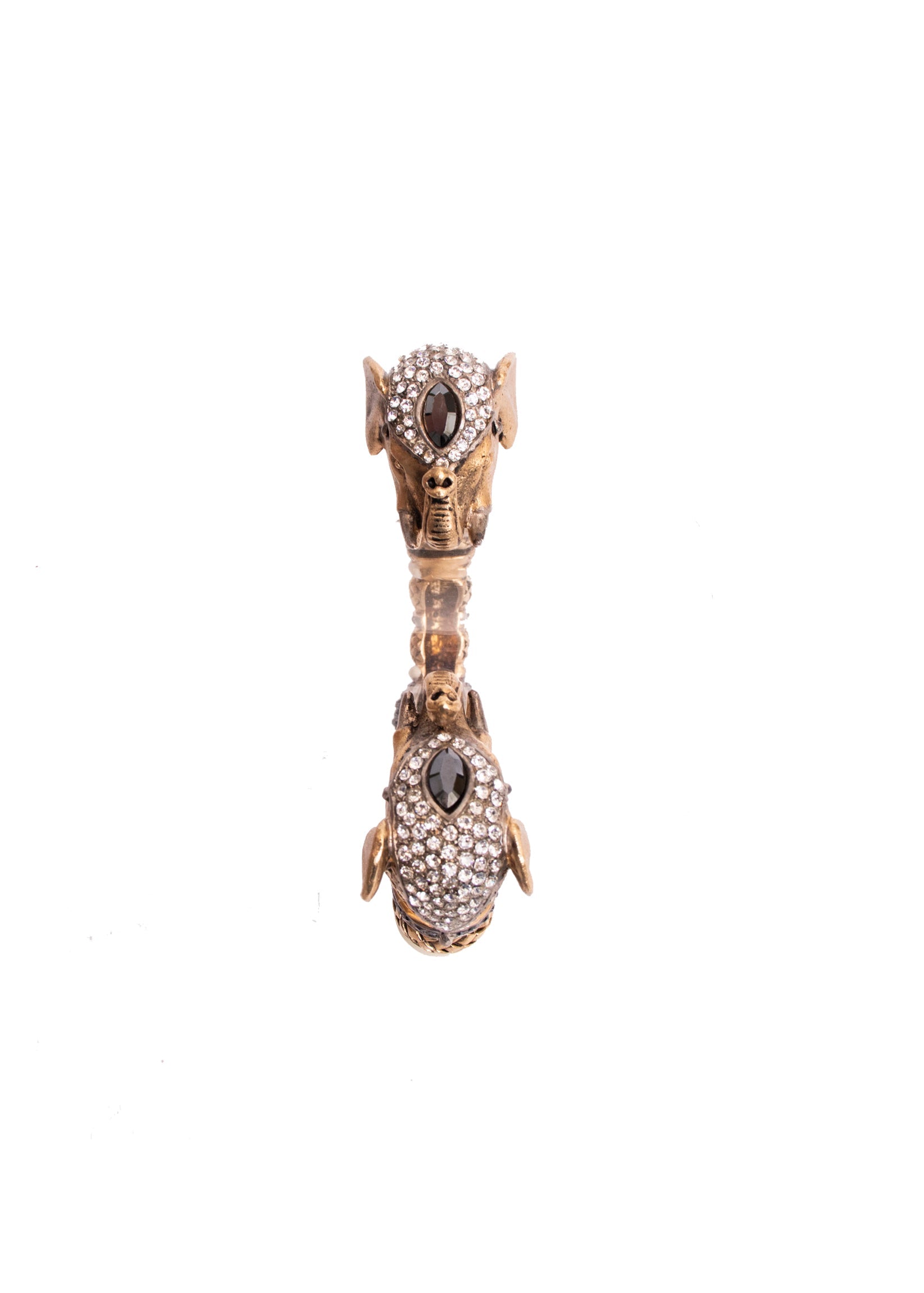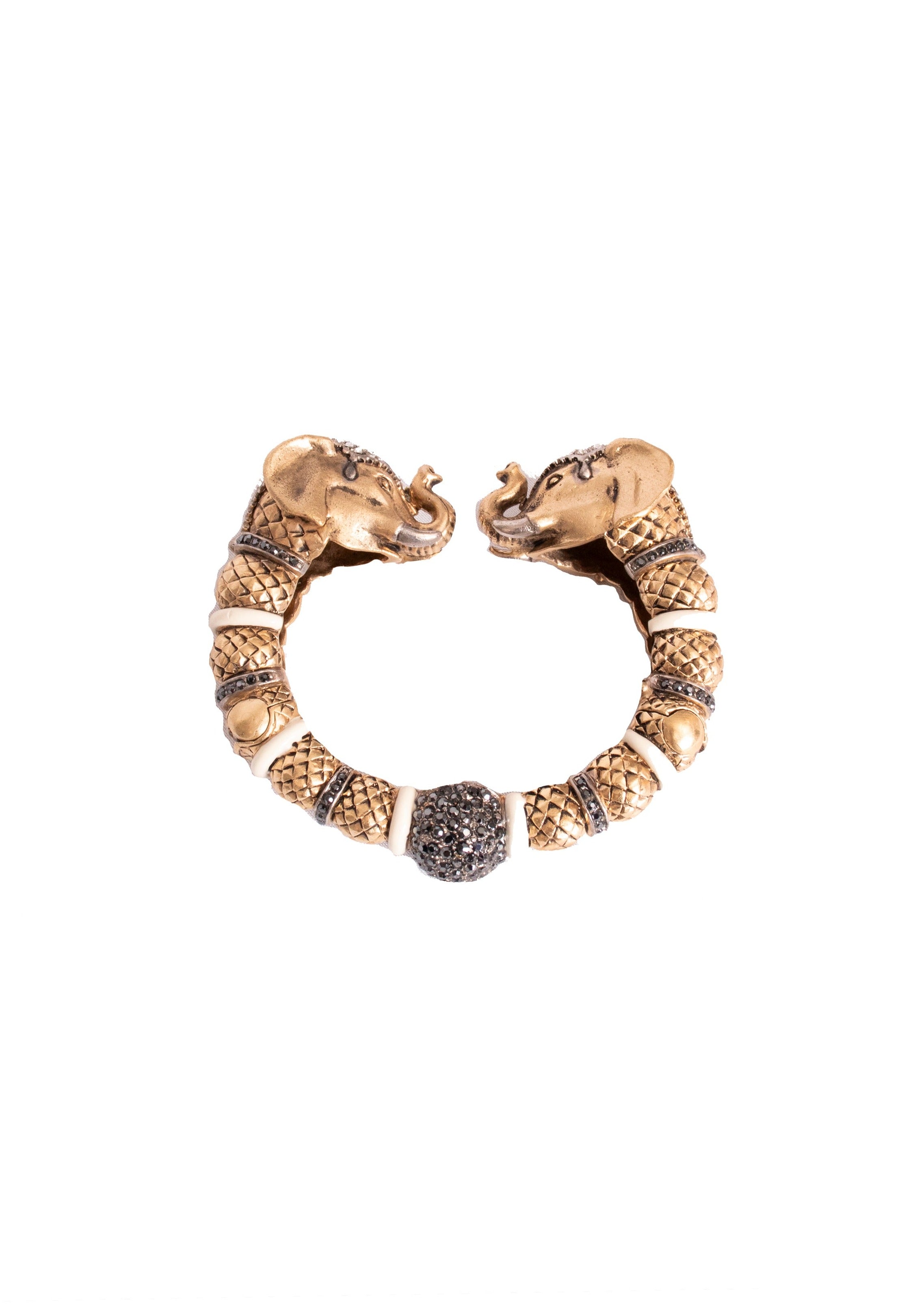 Gorgeously embellished, gold-tone metal crystal and enamel elephant head hinge bracelet. Mint condition.