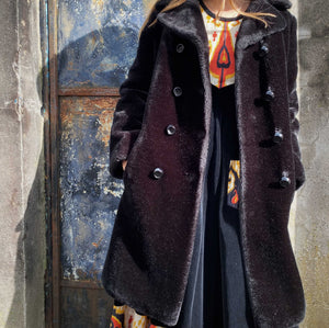Add a touch of bold vintage style to your wardrobe with this 1970s Black Faux Fur Coat. Luxuriously soft and eye-catching, this coat captures the essence of 1970s fashion with its plush texture, oversized collar, and statement buttons. Whether you're dressing up for a night out or adding a dramatic flair to your daytime look, this coat brings both glamour and warmth to any outfit.