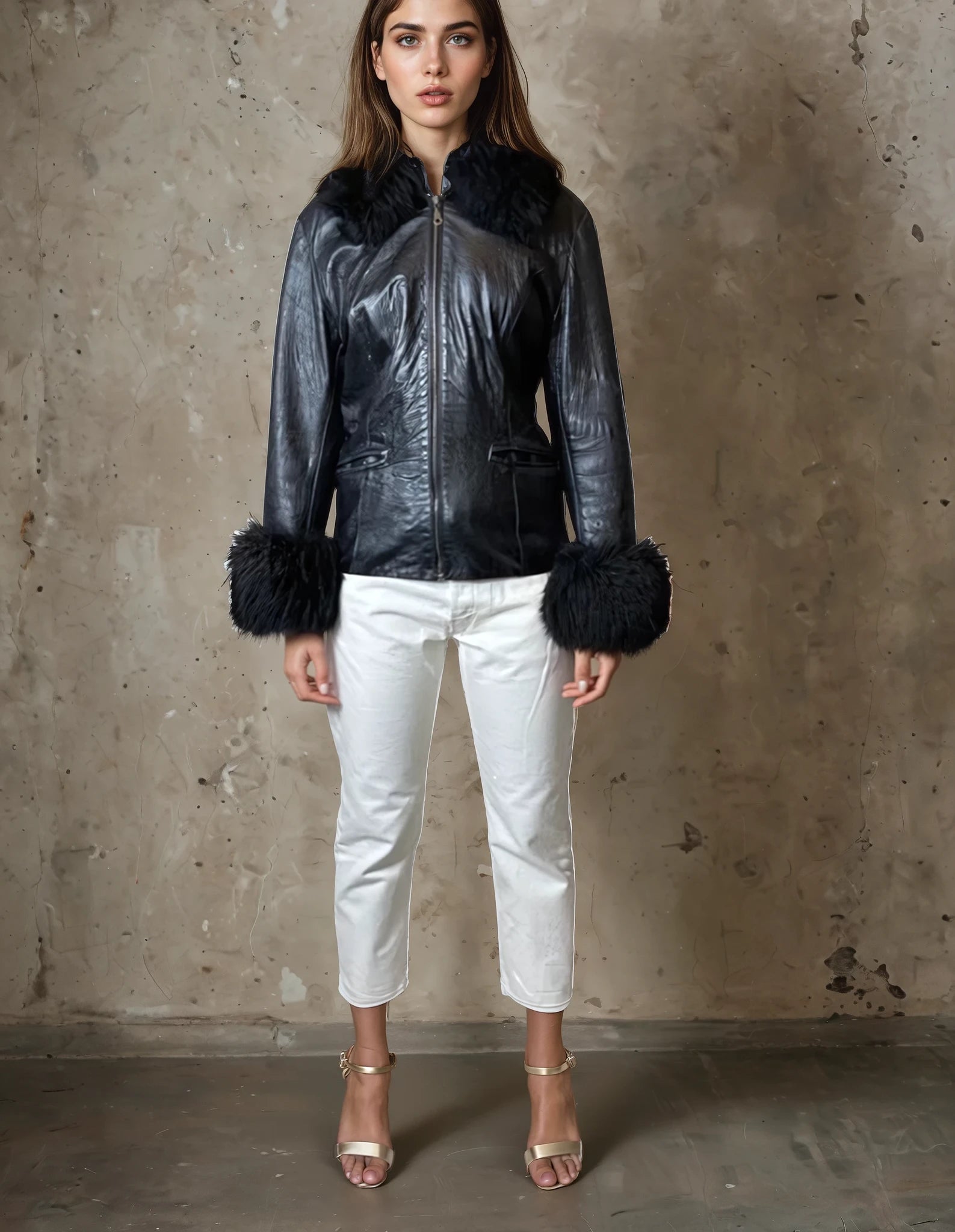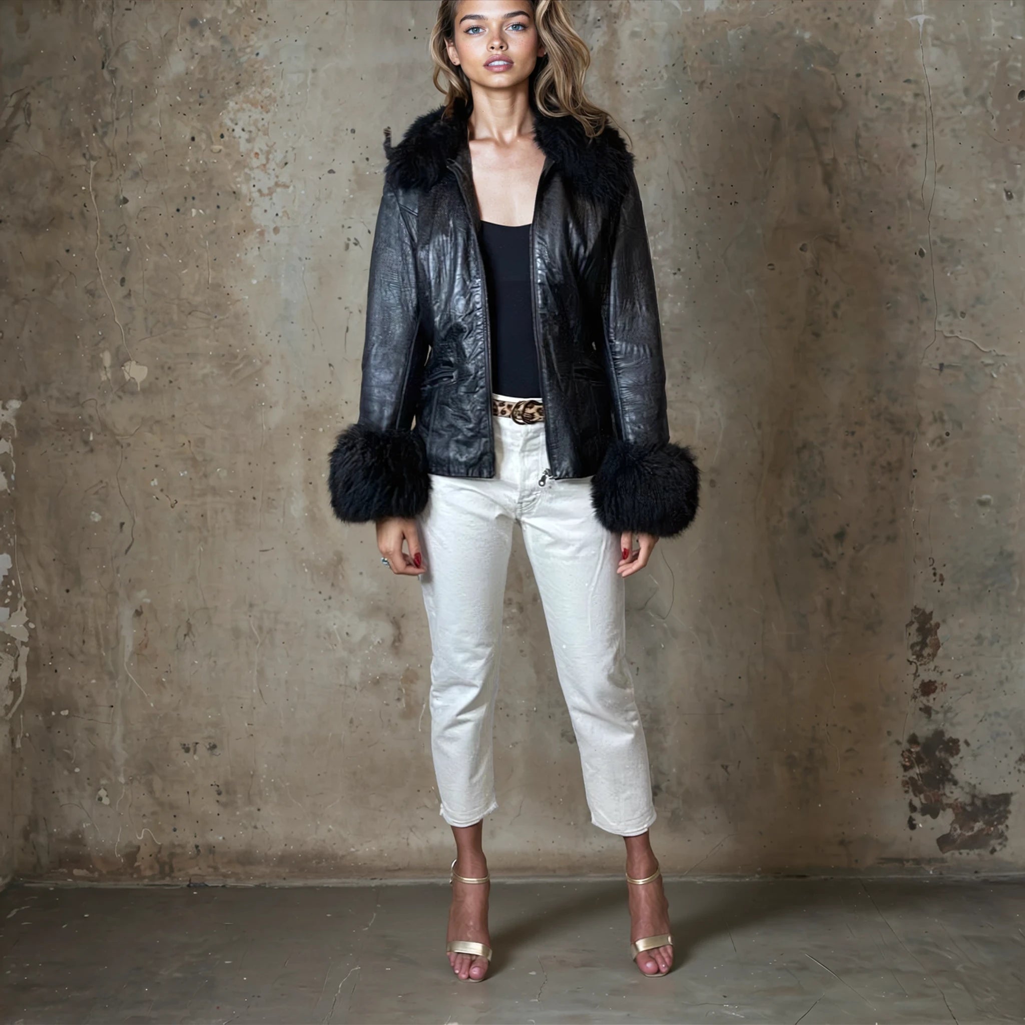 This Super Cute Original Vintage 1980's Black Leather & Sheepskin Jacket is in great vintage condition and nicely worn in. It features a zip up the front and two pockets with sheepskin on the cuffs & collar and is fully lined. It would fit a UK size 8 - 12 and so please do check the measurements to avoid disappointment.
