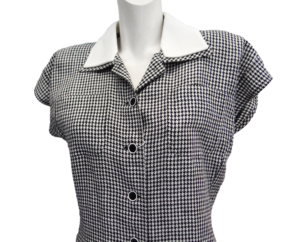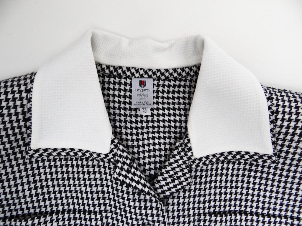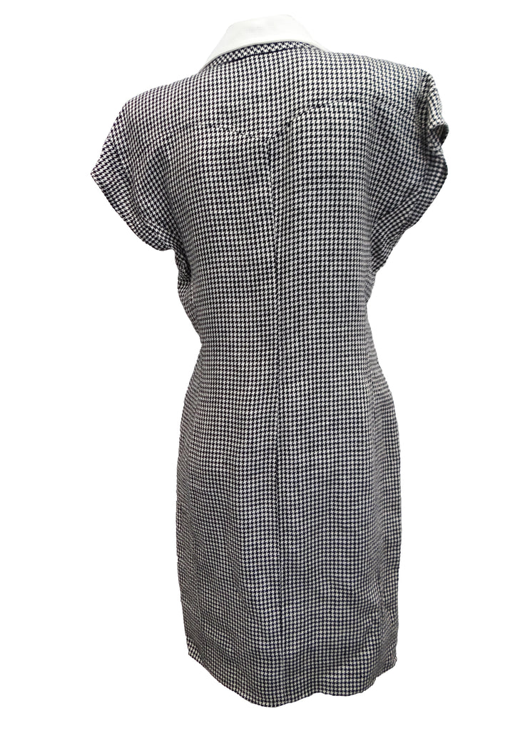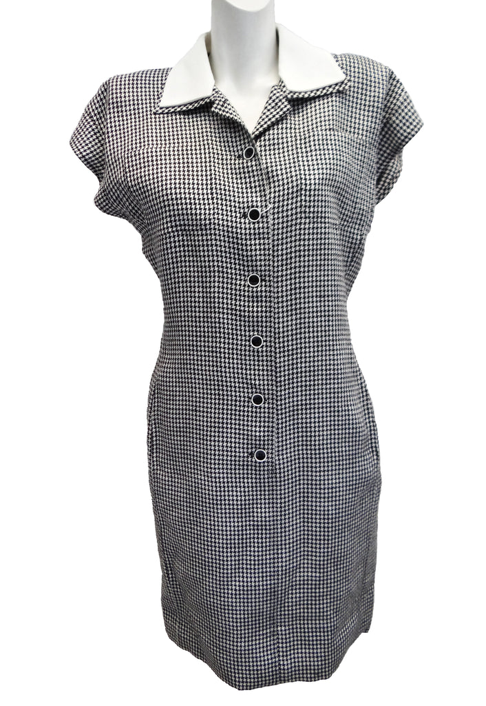 Ungaro Vintage Button-through Houndstooth Dress with Contrasting Collar, UK12