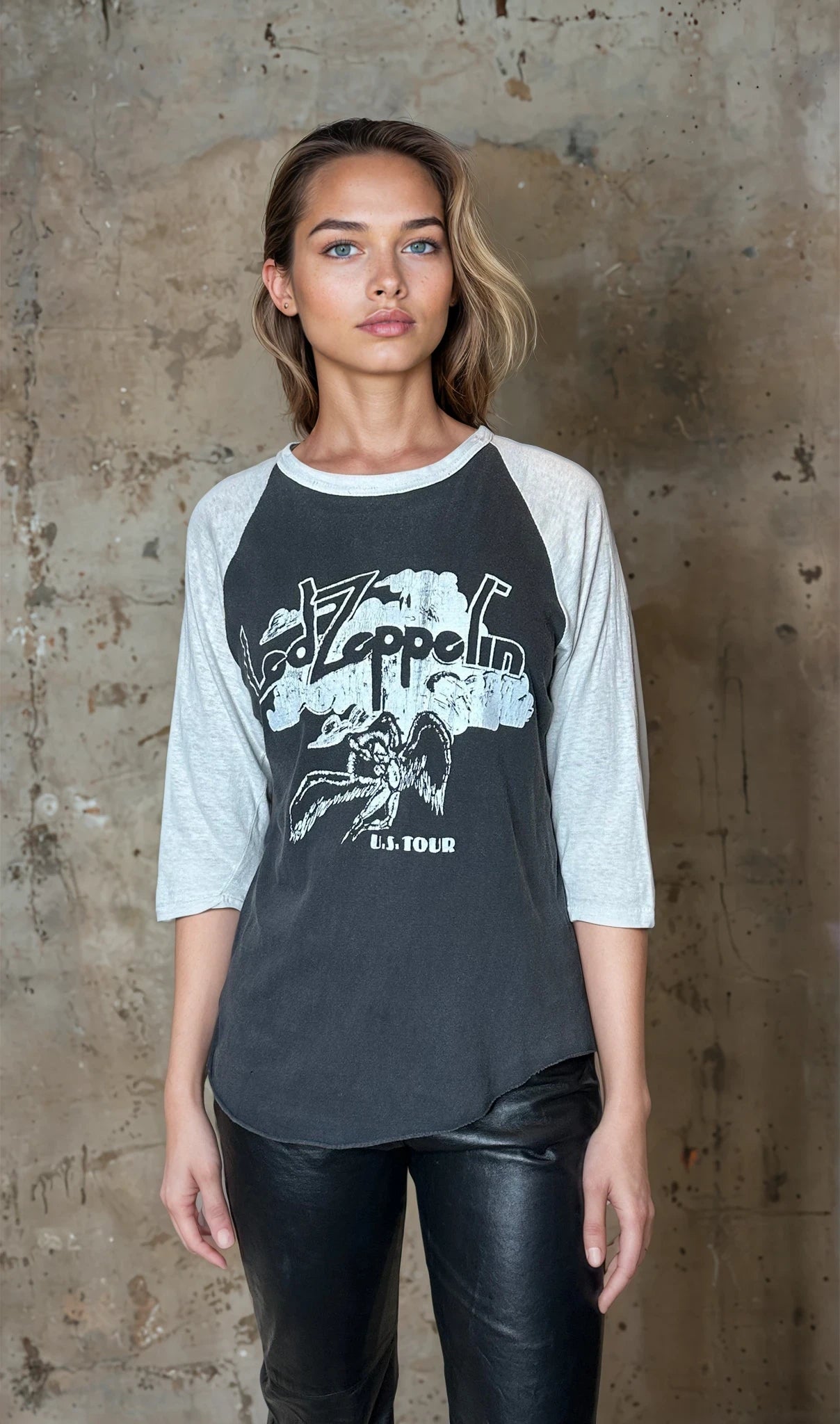 Step back in time with this rare vintage Led Zeppelin t-shirt from their US tour in the 1970s. Made with a single stitch for authenticity, this UK sized 6-10 shirt is perfect for any rock or music enthusiast. Get your hands on a truly collectable piece of music history! Due to its age this T Shirt is very worn in and has some minor flaws and small holes only adding to its authenticity being over 50 years old.