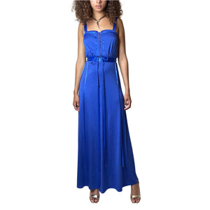 Vintage 1970's Original Electric Blue Disco Maxi Dress UK 10 - 12