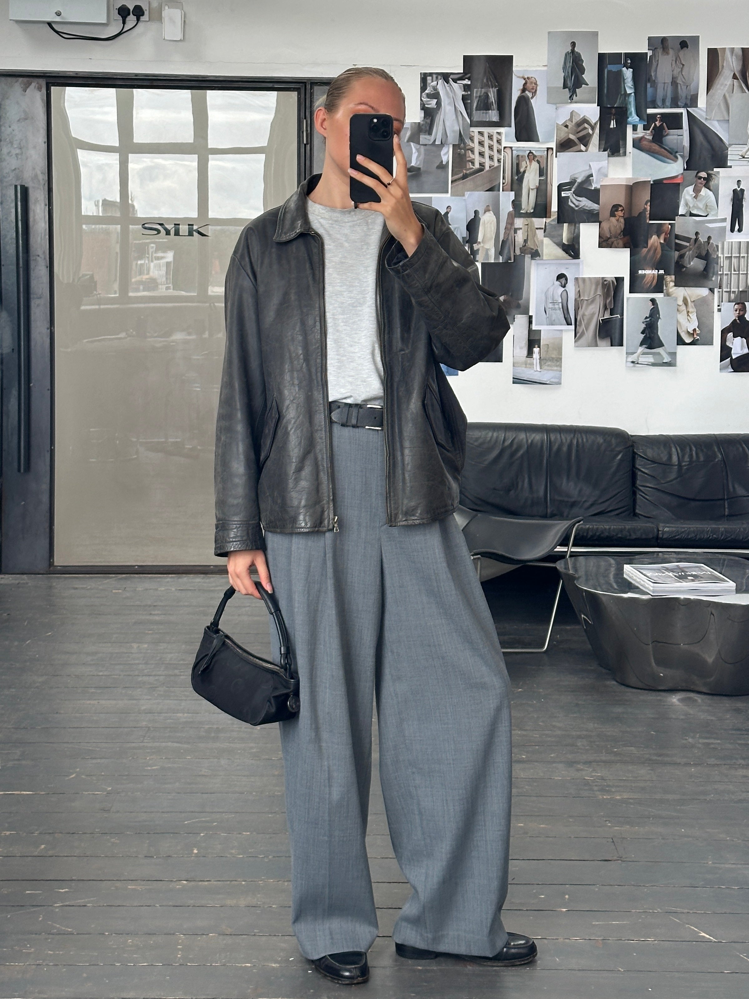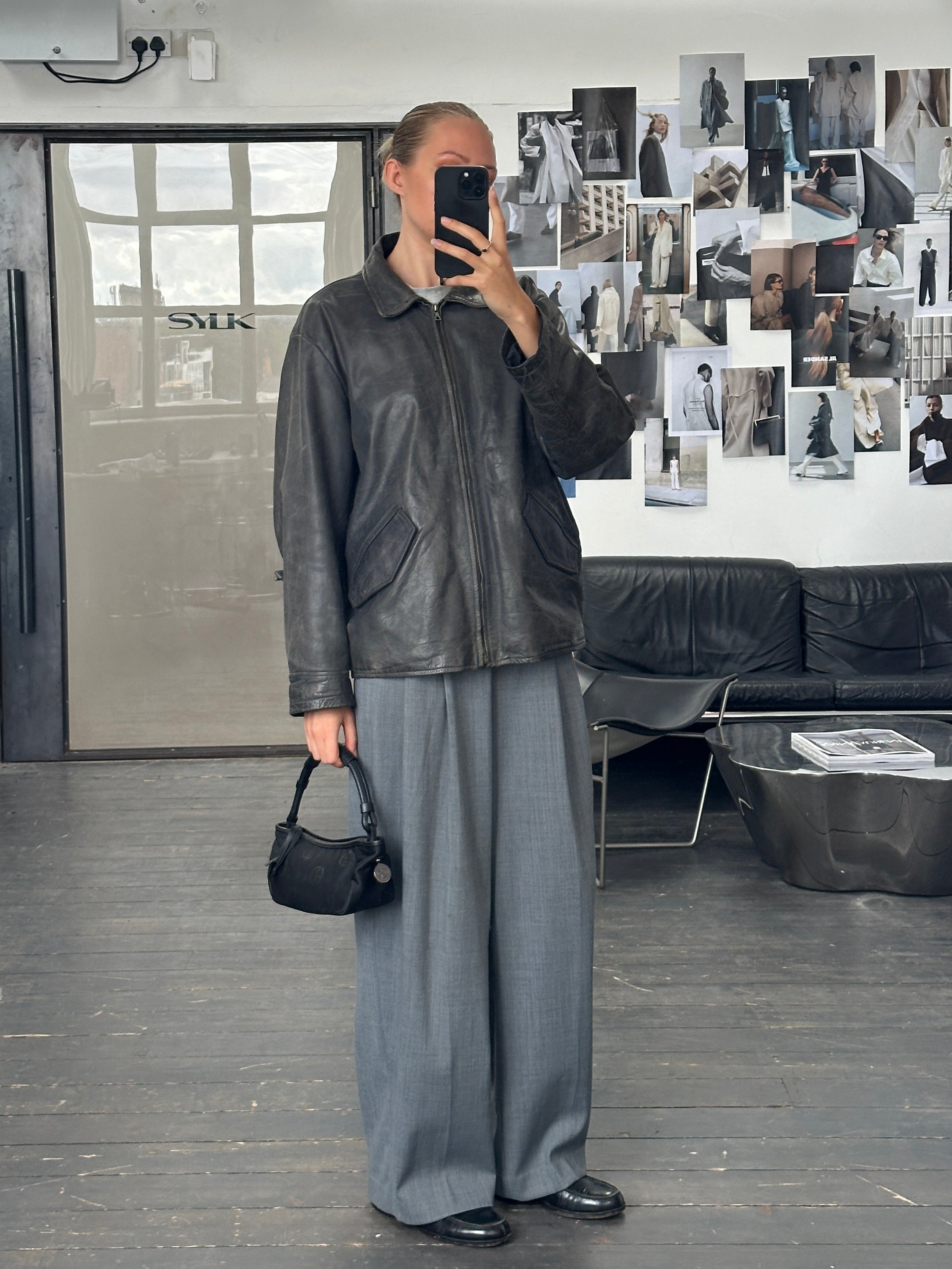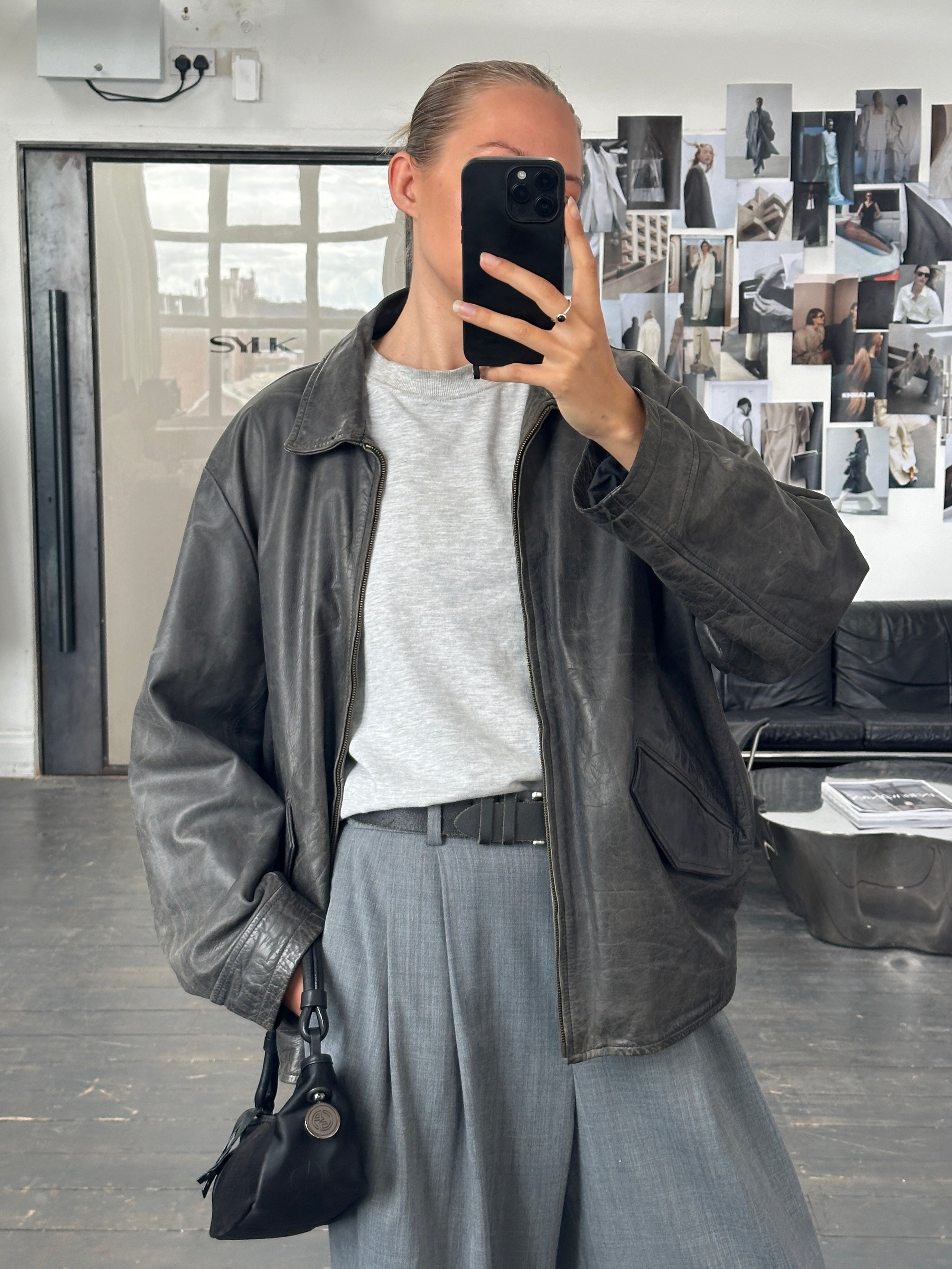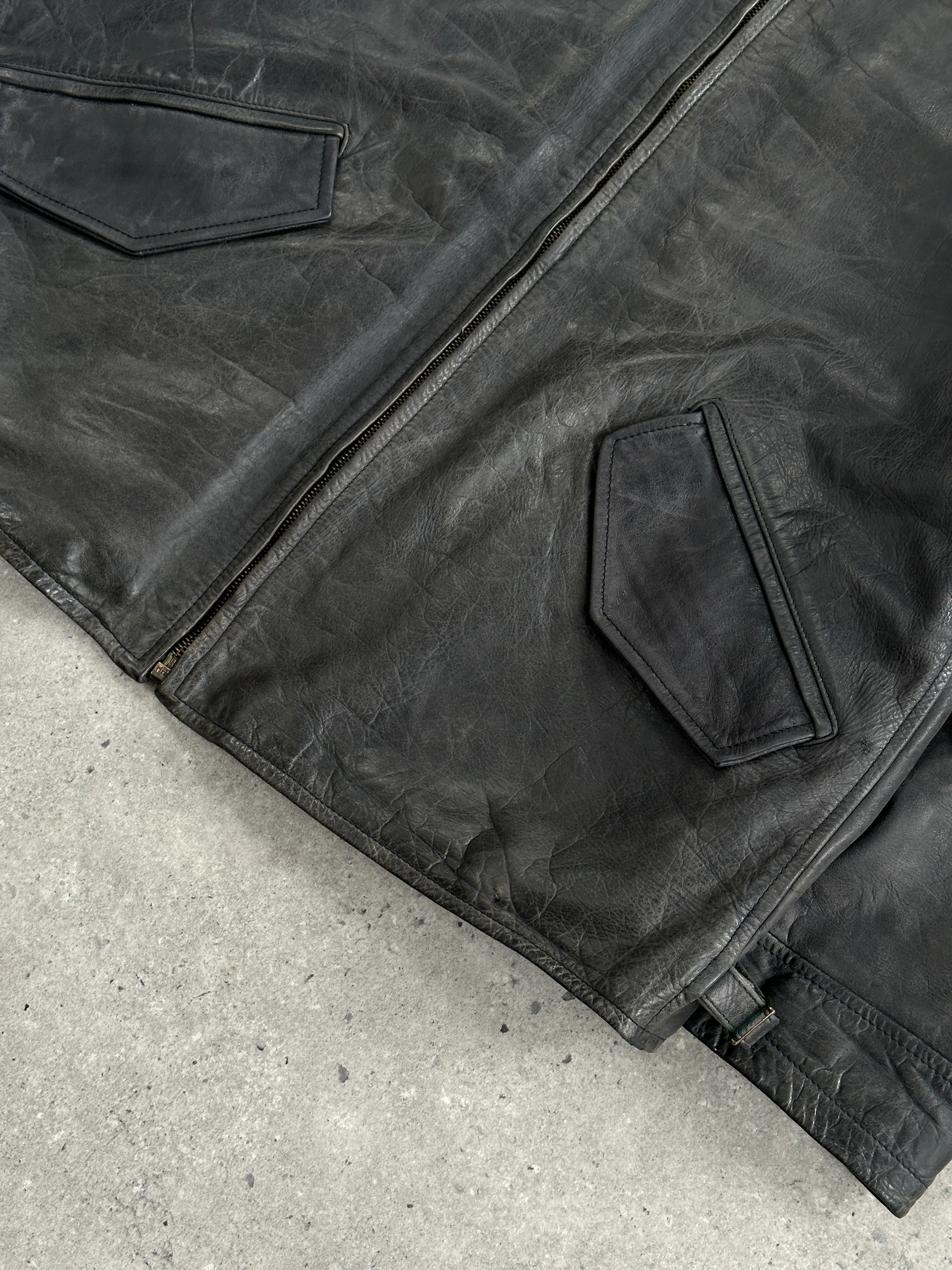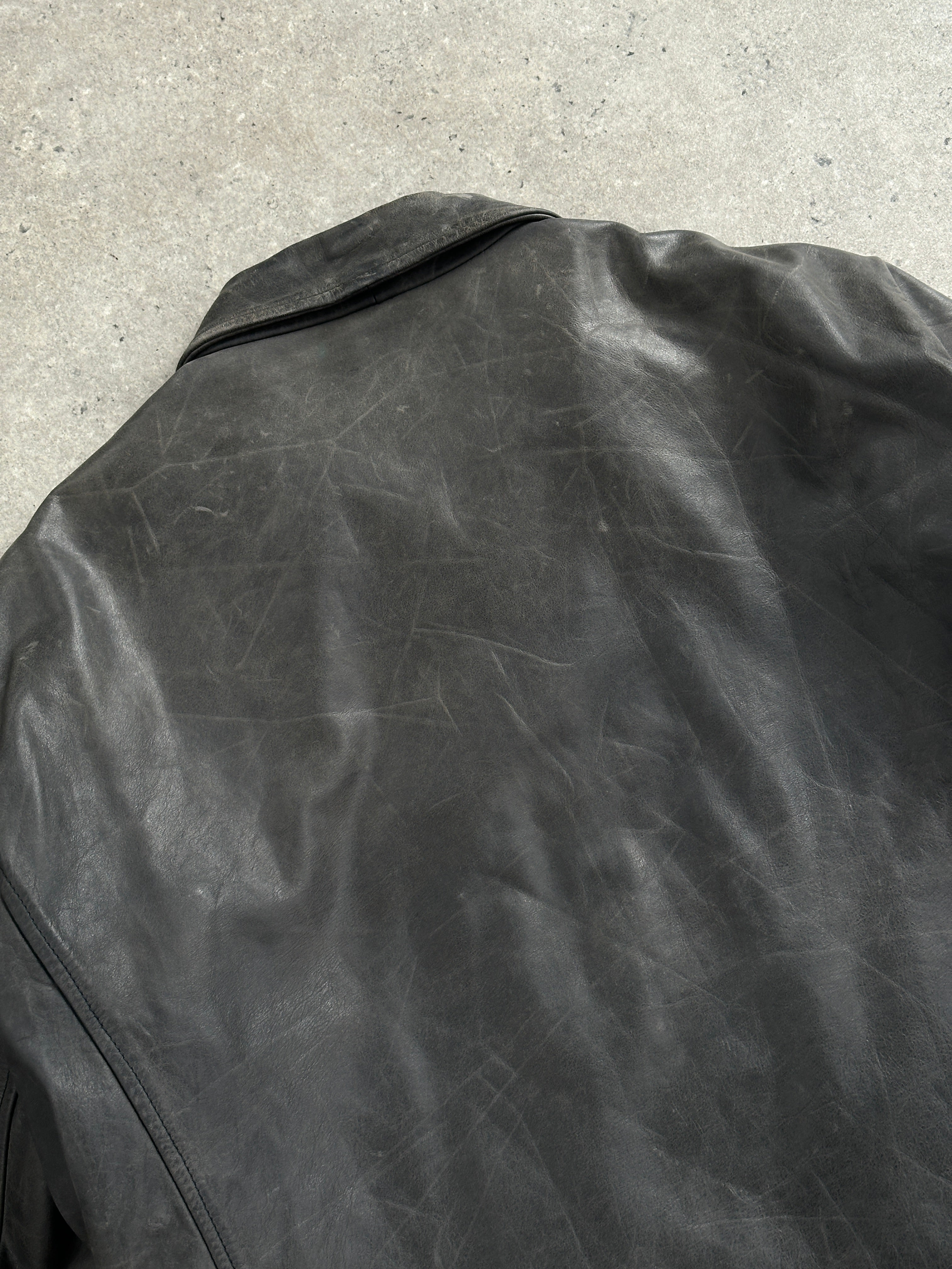 Vintage 1990s Aged Boxy Leather Jacket - L/XL