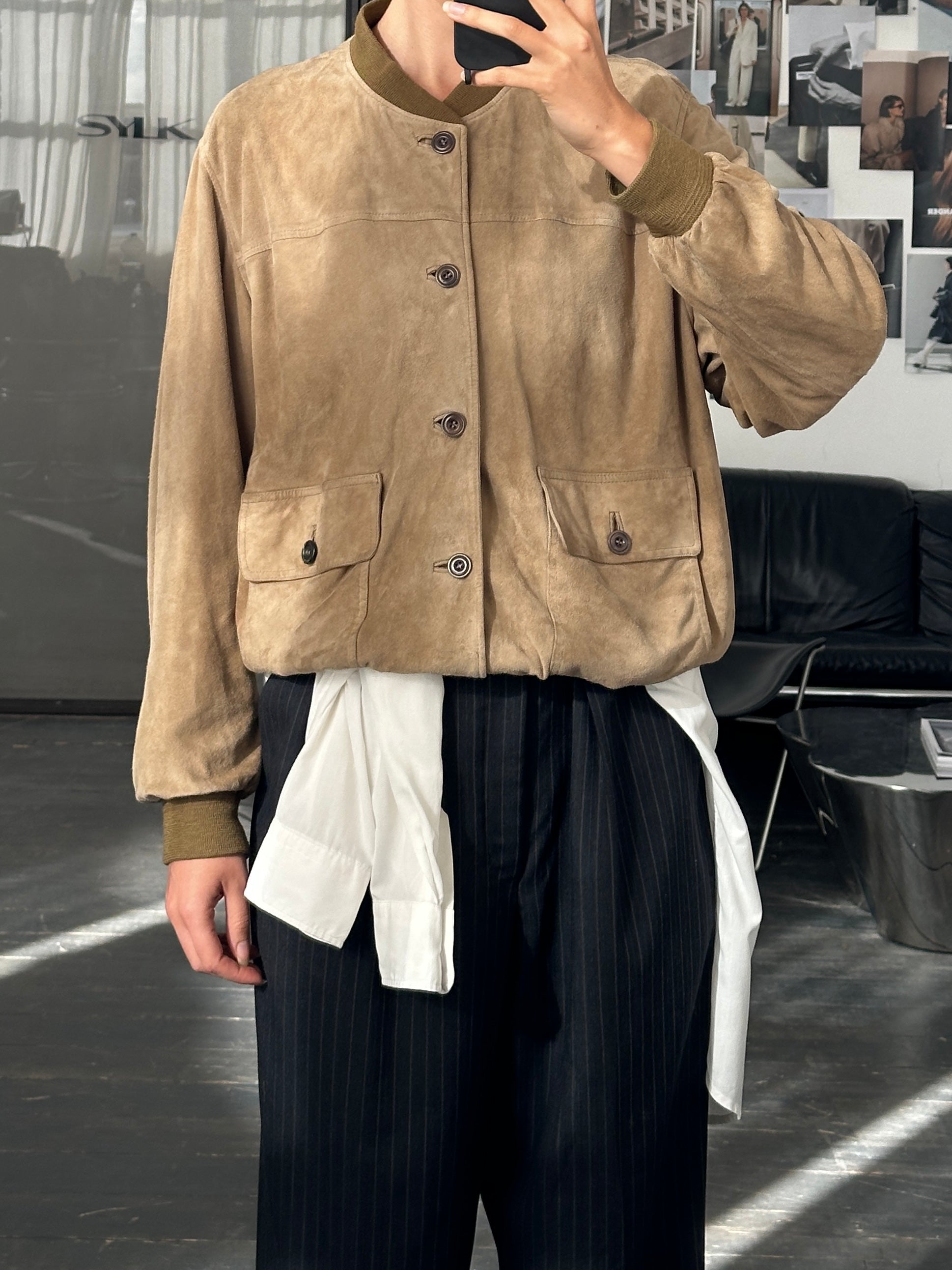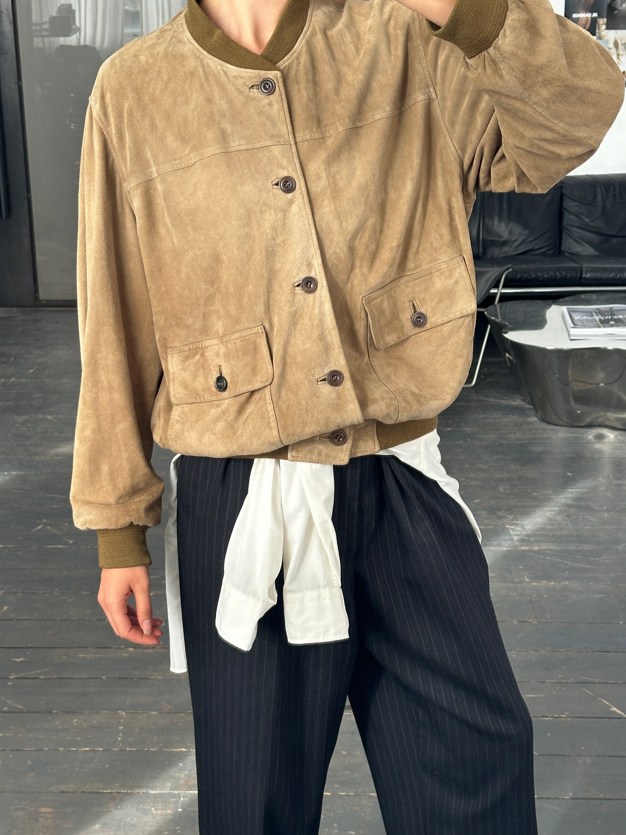 ~ Suede bomber jacket with a relaxed fit