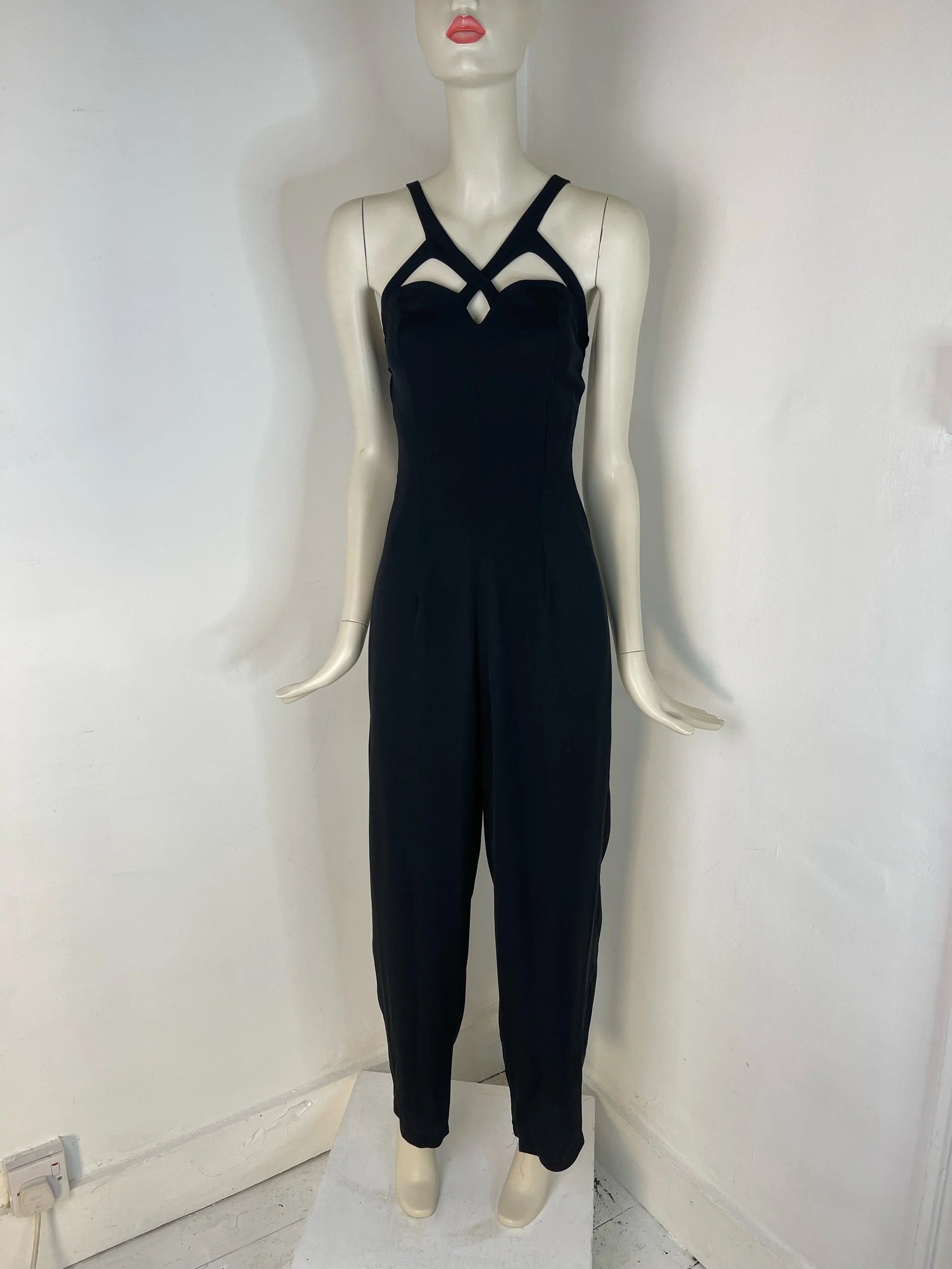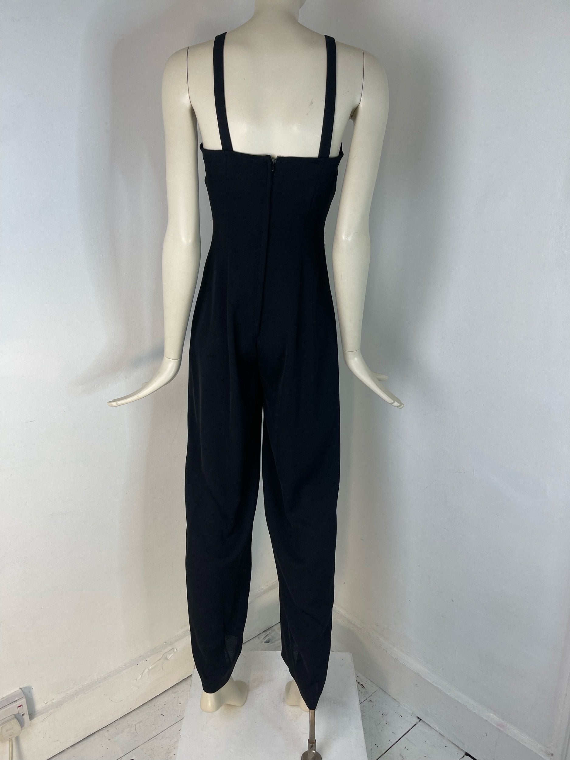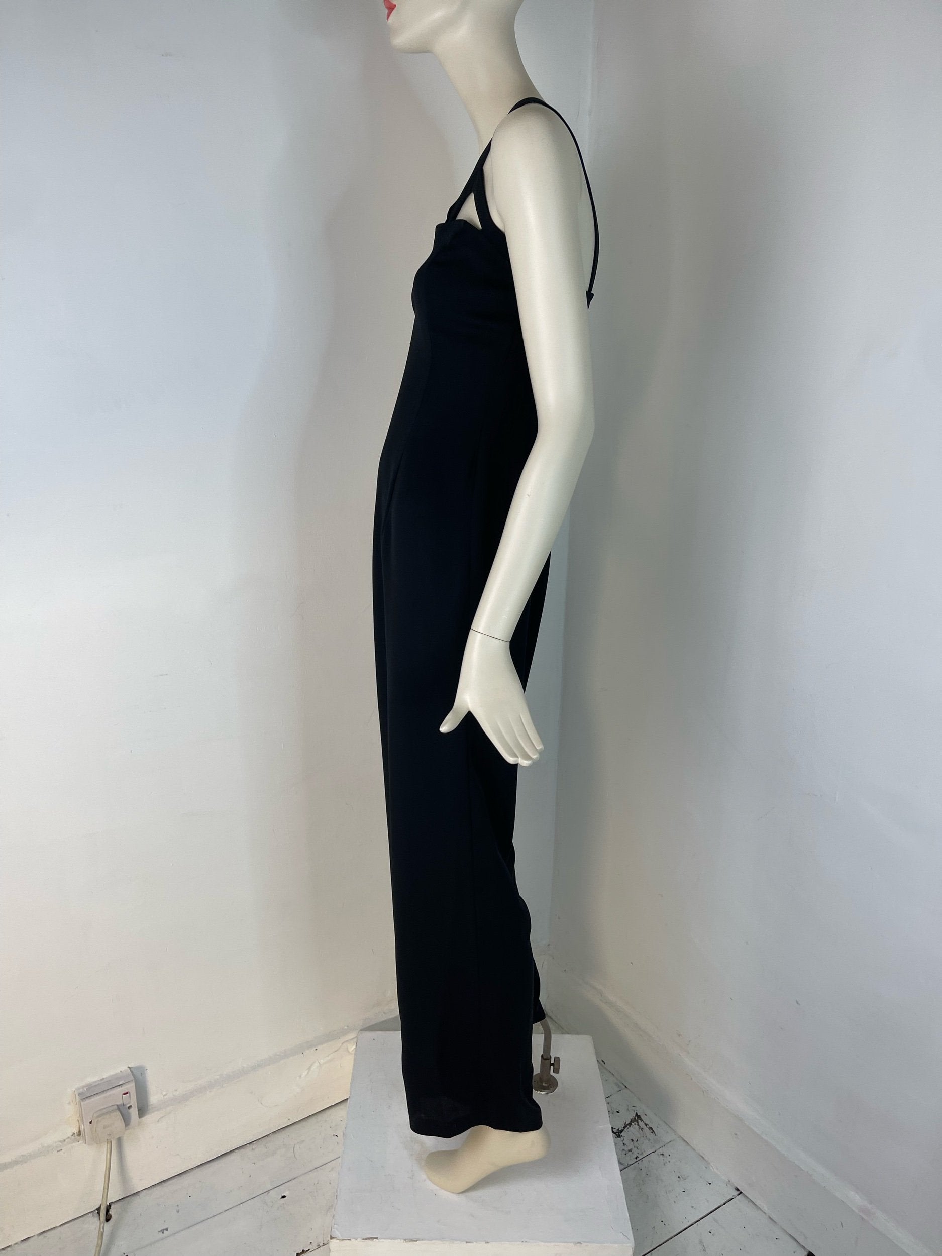 Vintage Bernshaw UK Size 10 Black Strappy Jumpsuit