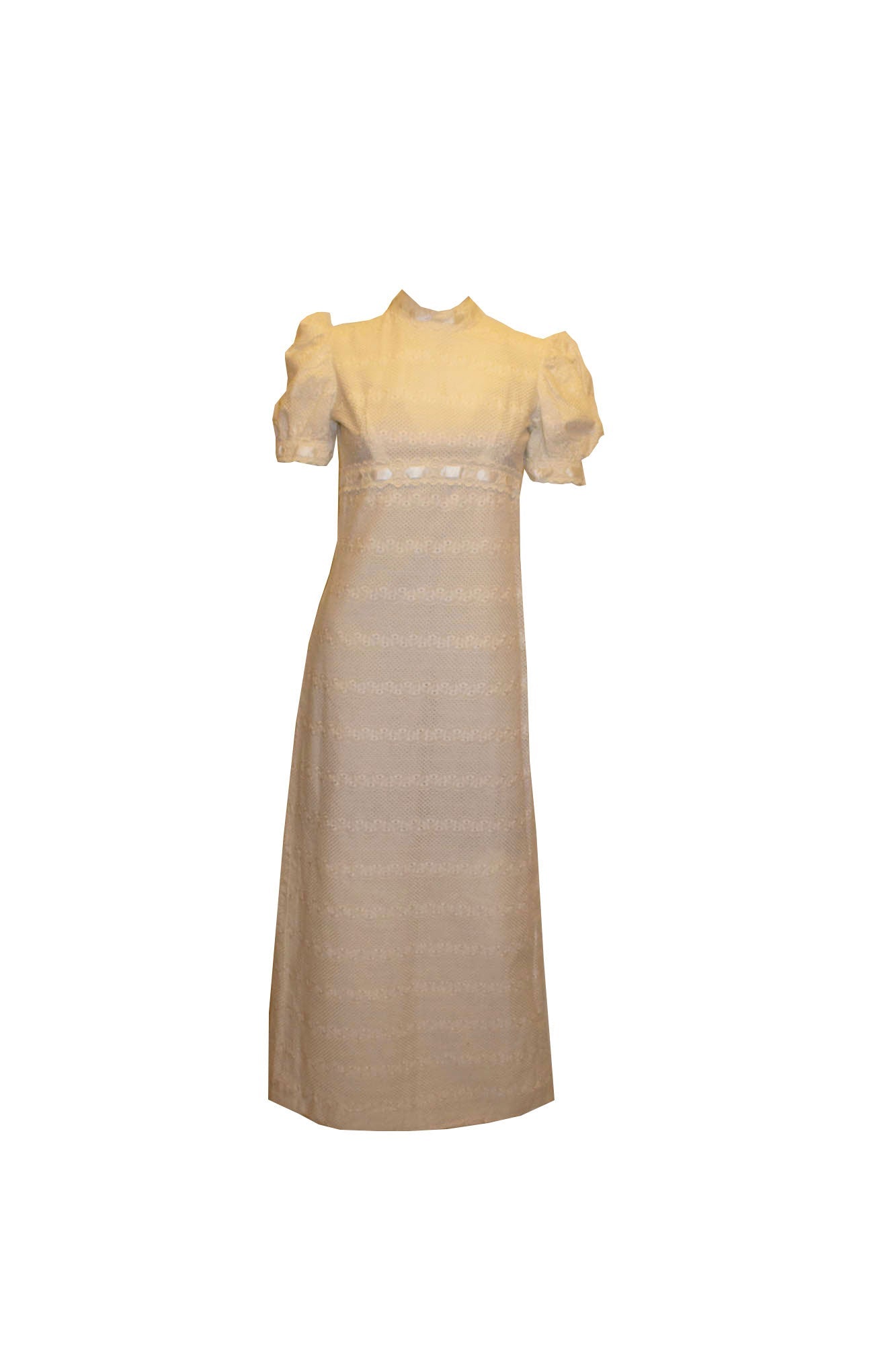 A stunning vintage gown by California , perfect for a Summer party or wedding. The dress has puff sleaves, a back central zip and A line skirt.