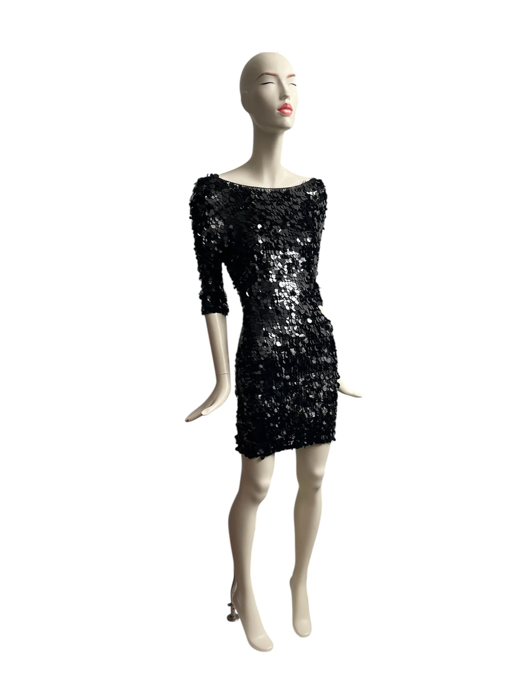 Turn heads in this gorgeous black sequin mini dress! Fully covered in shimmering black sequins that catch the light beautifully, this dress is perfect for parties, nights out, or special occasions.