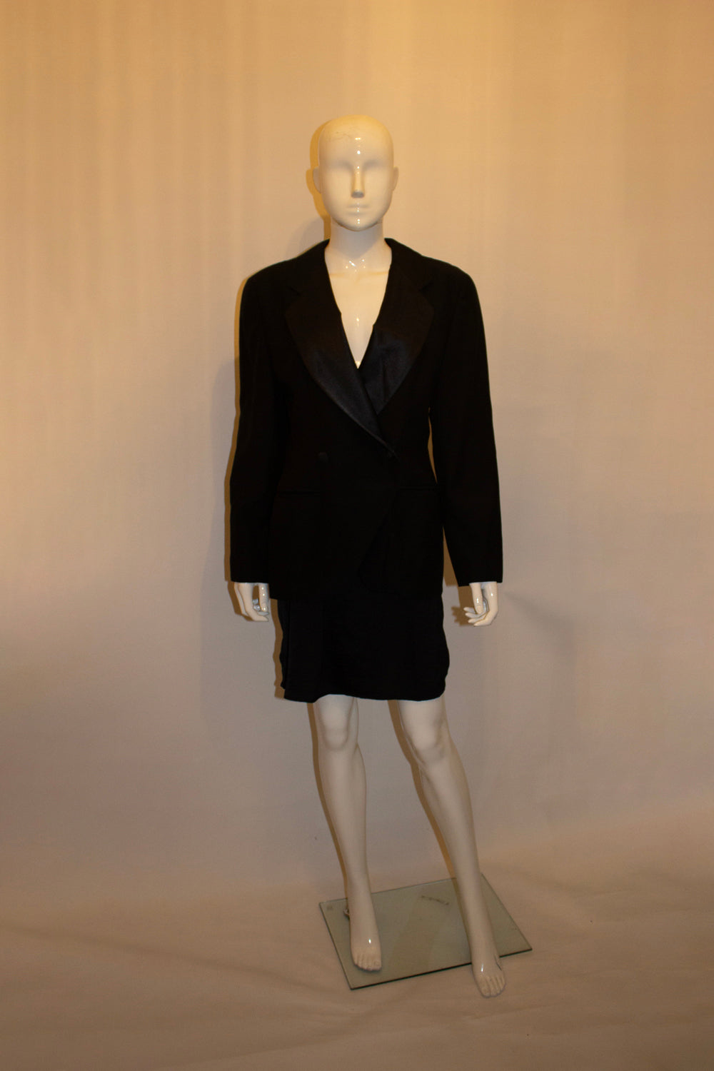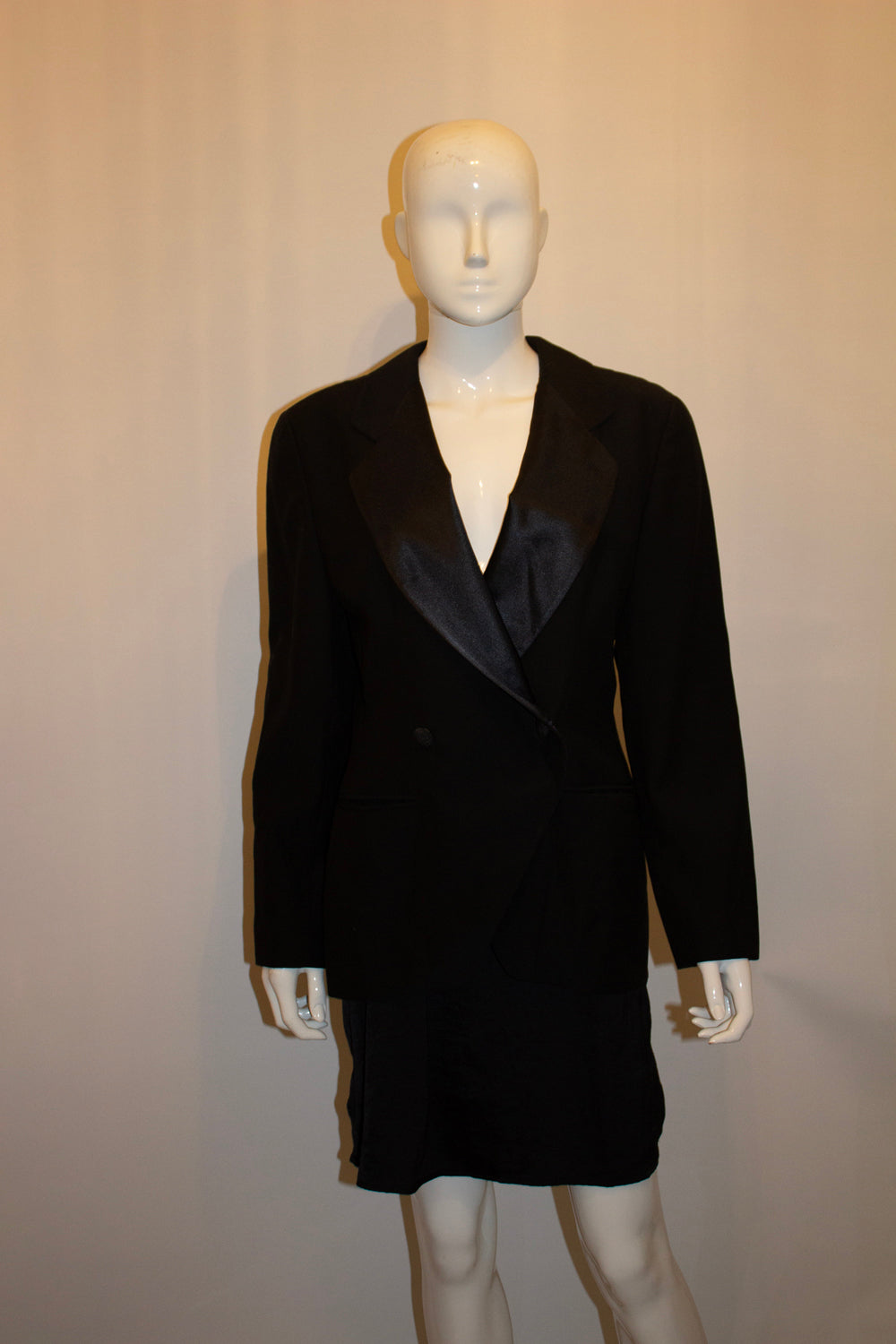 A chic vintage dinner /tuxedo jacket by Giorgio Armani , main line. The jacket is made of wool with a satin lower lapel, and cut away front. It is fully lined ,and has a pocket on either side.