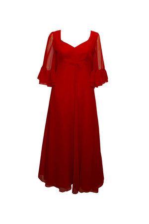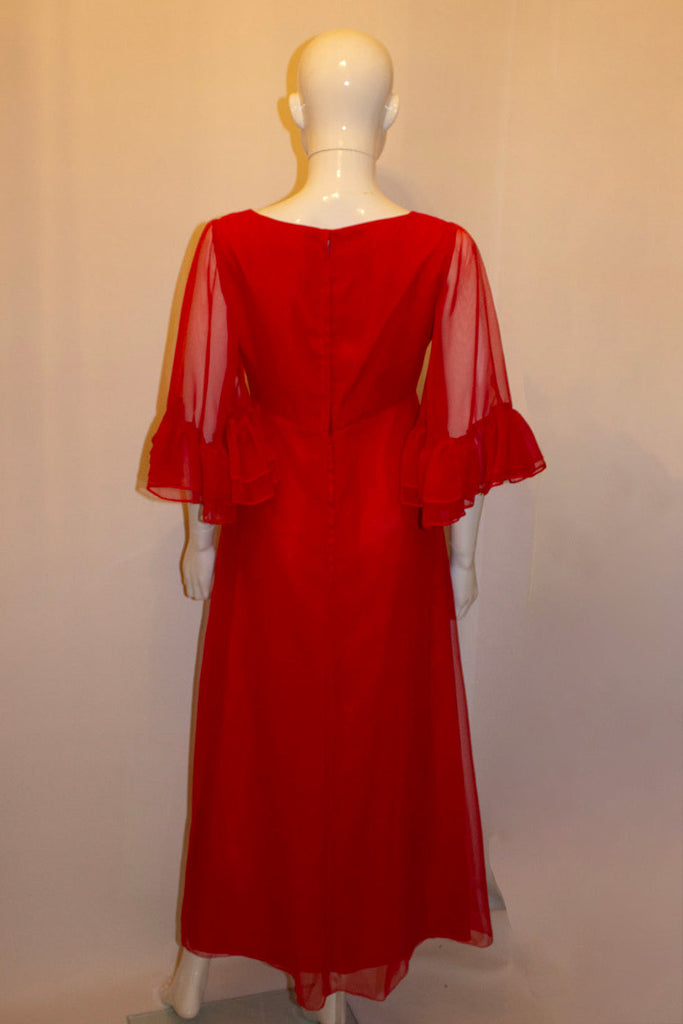 A headturning lady in red vintage dress by Kati, Laura Philipps. The dress has a v neckline , short angel sleaves and a central back zip. It is fully lined.