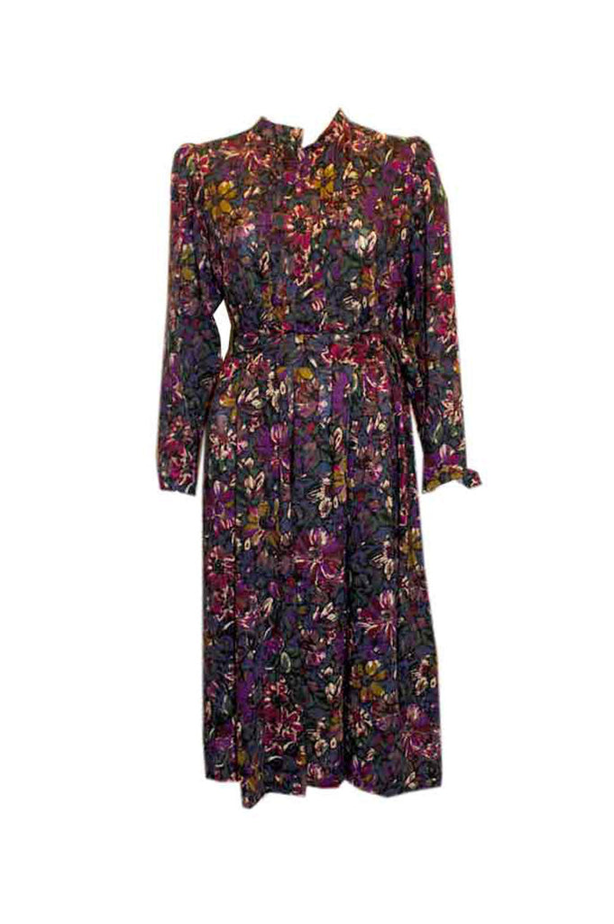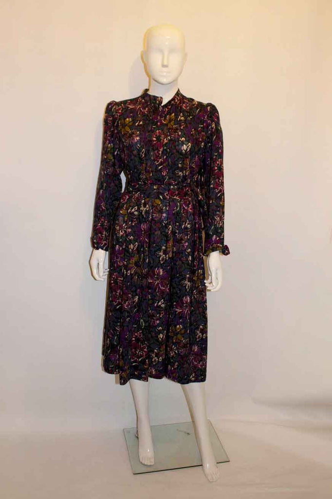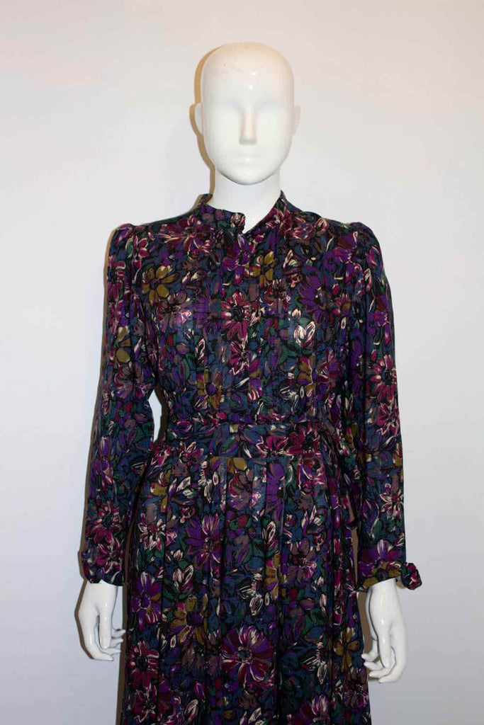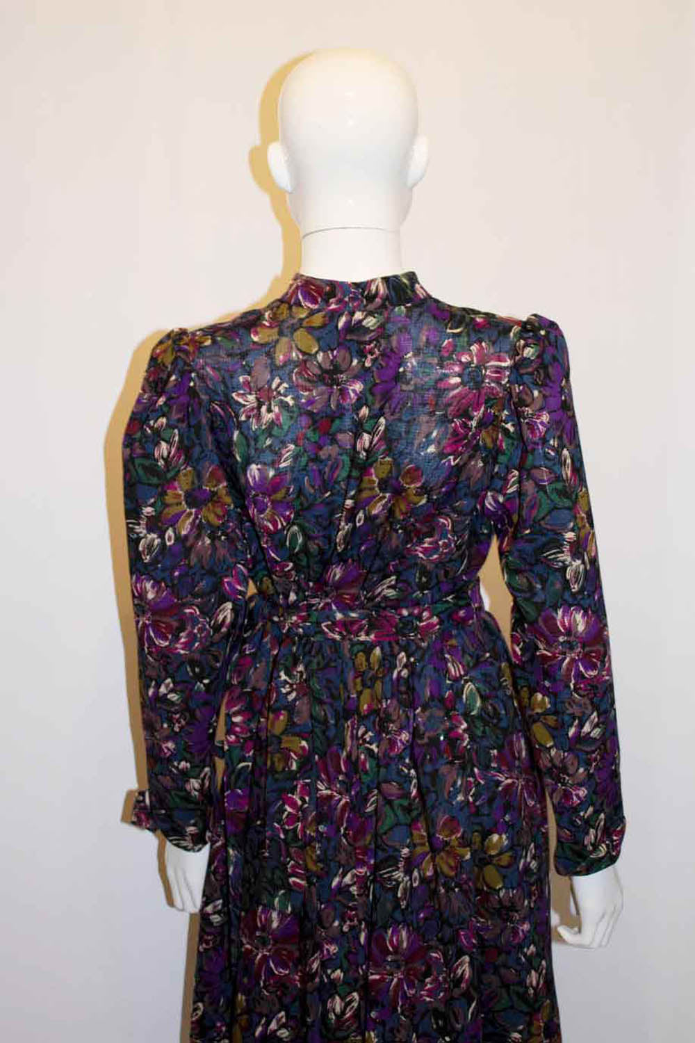 A great vintage dress for Fall, from Liberty. In a wonderful floral mix of purple, green and blue the dress has tucks on the bodice , shaped end of sleaves, a self fabric tie belt and button opening. It is unlined. UK size 12. measurements: Bust up to 38'',length 44''