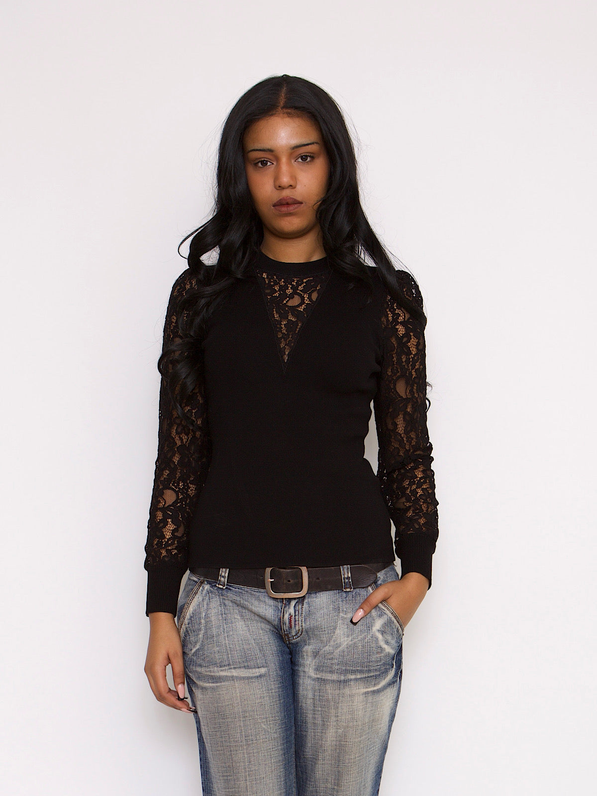VINTAGE MORGAN JUMPER BLACK WITH LACE