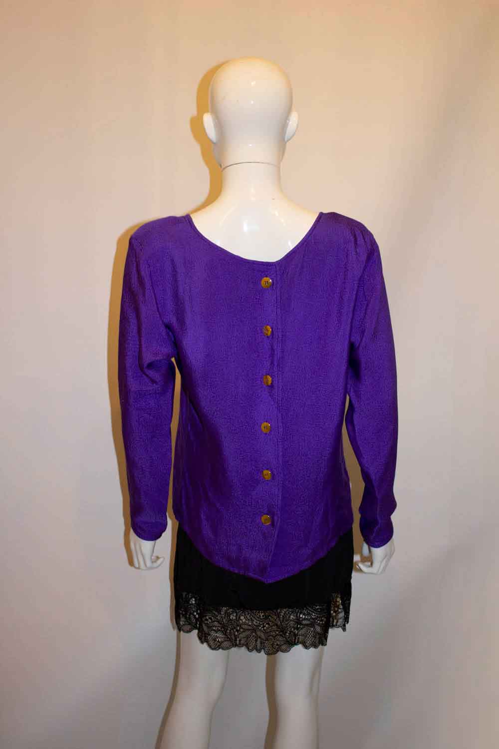 A stylish vintage silk top by Yves Saint Laurent , Rive Gauche line. In a purple textured silk, the top has a round neckline and six button fastening at the back,